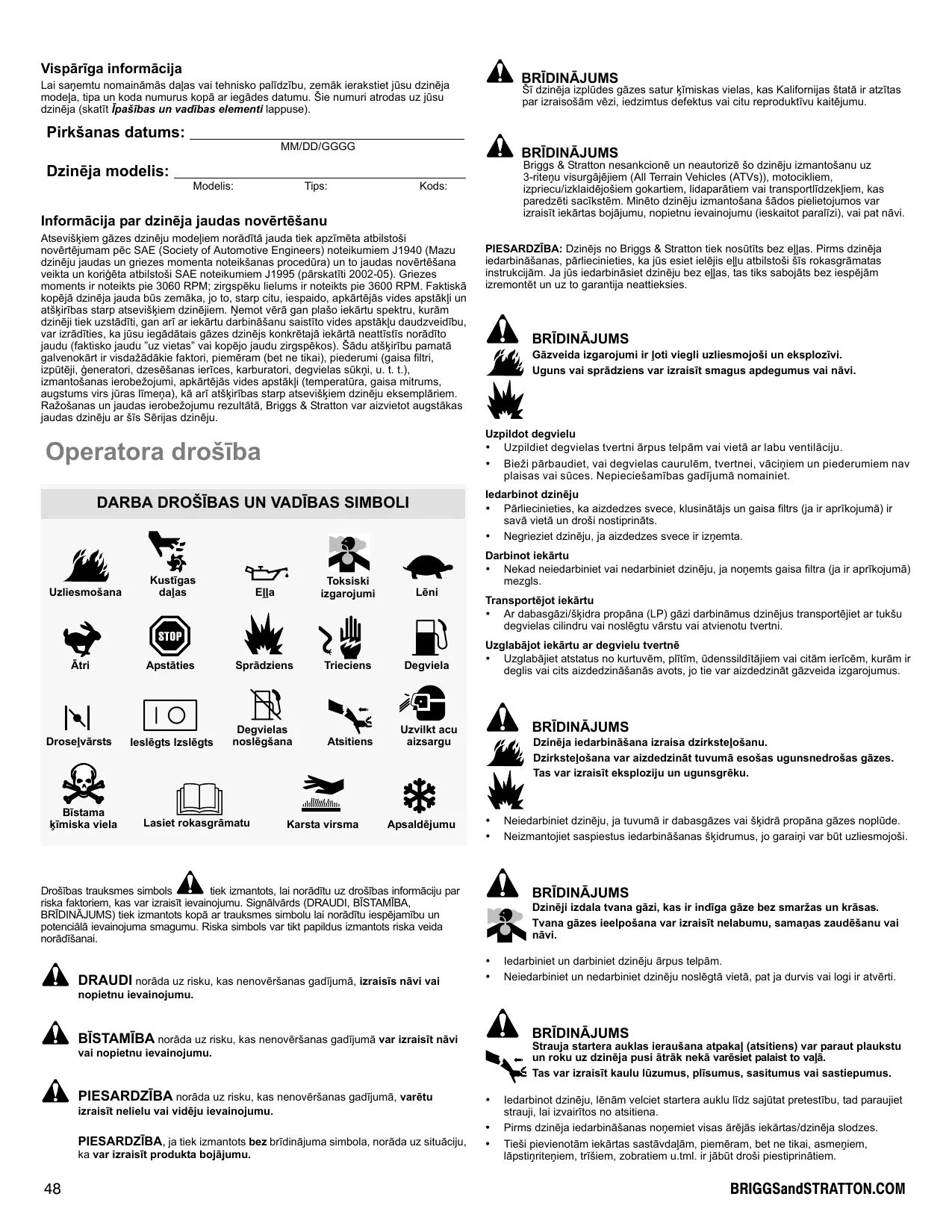 BRIGGS & STRATTON 303000 - Motors BRIGGS & STRATTON - Bezmaksas lietošanas instrukcija