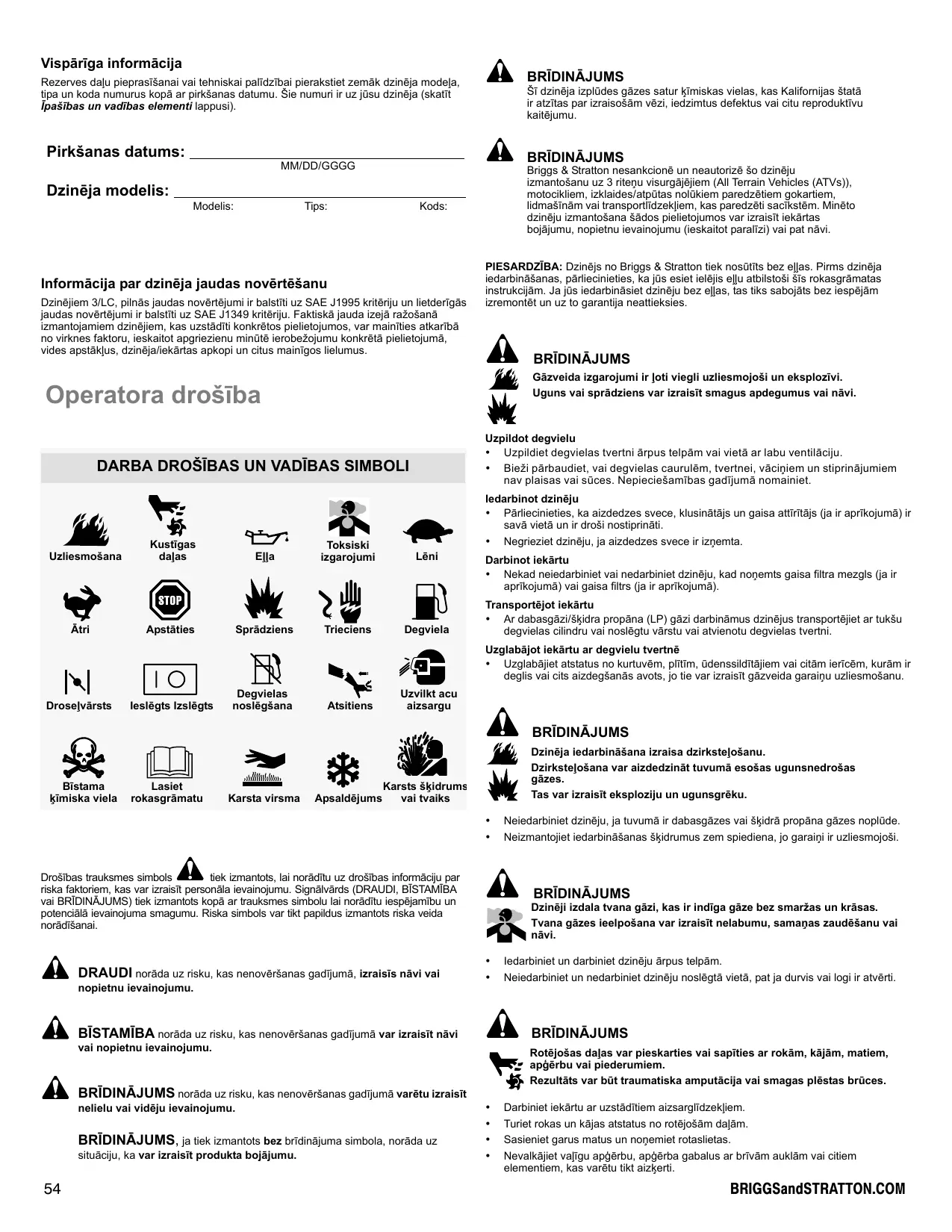 LIETOŠANAS INSTRUKCIJA BRIGGS & STRATTON 436777 BRIGGS & STRATTON