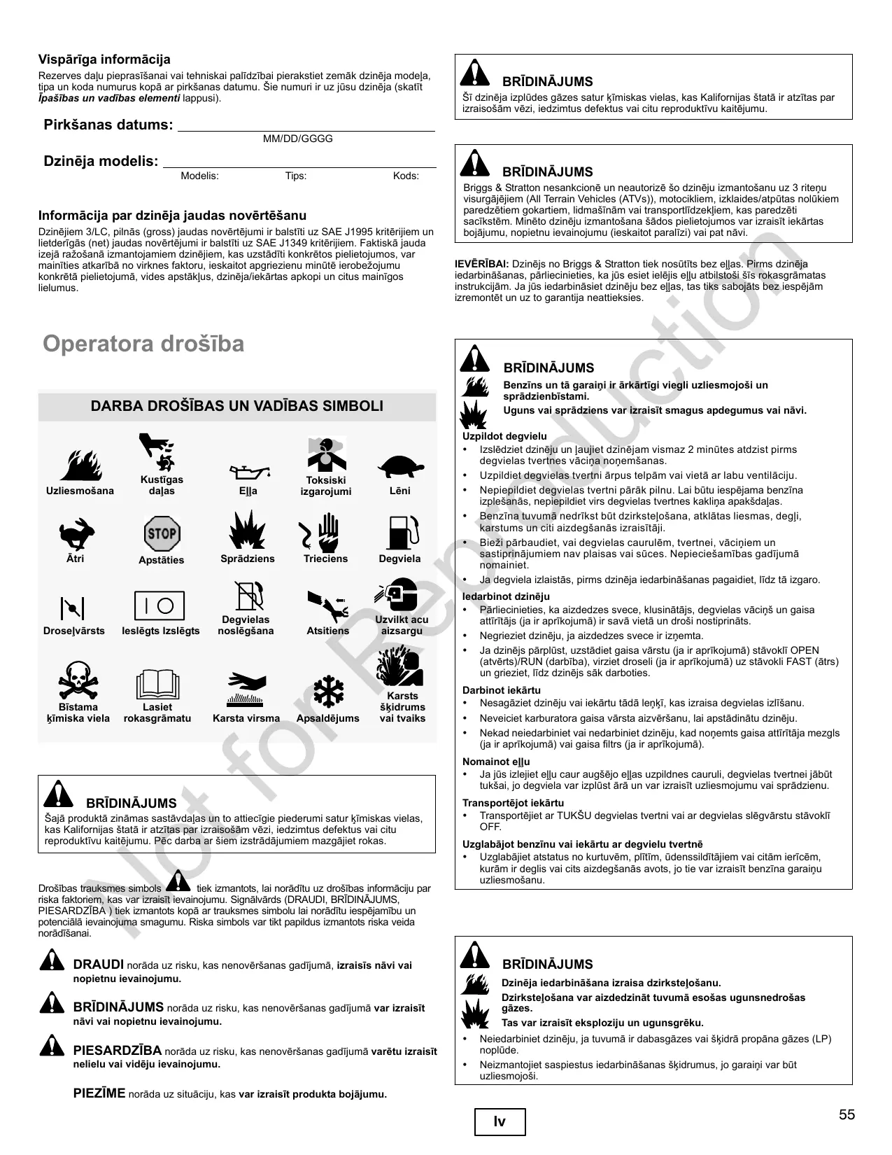 LIETOŠANAS INSTRUKCIJA BRIGGS & STRATTON 583447 BRIGGS & STRATTON