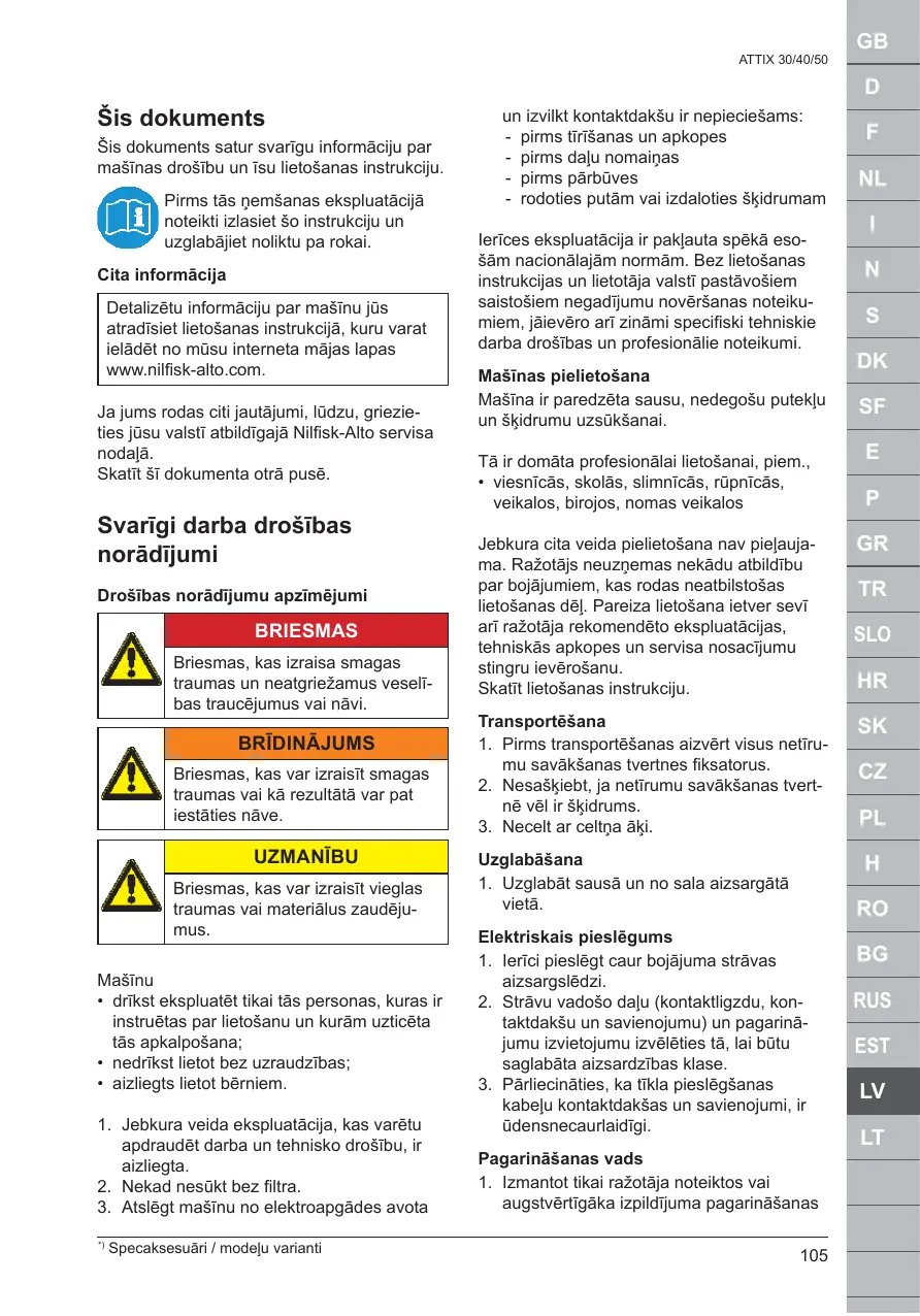 Retrouvez gratuitement la notice de l'appareil ATTIX 30 BATT NILFISK au format PDF.