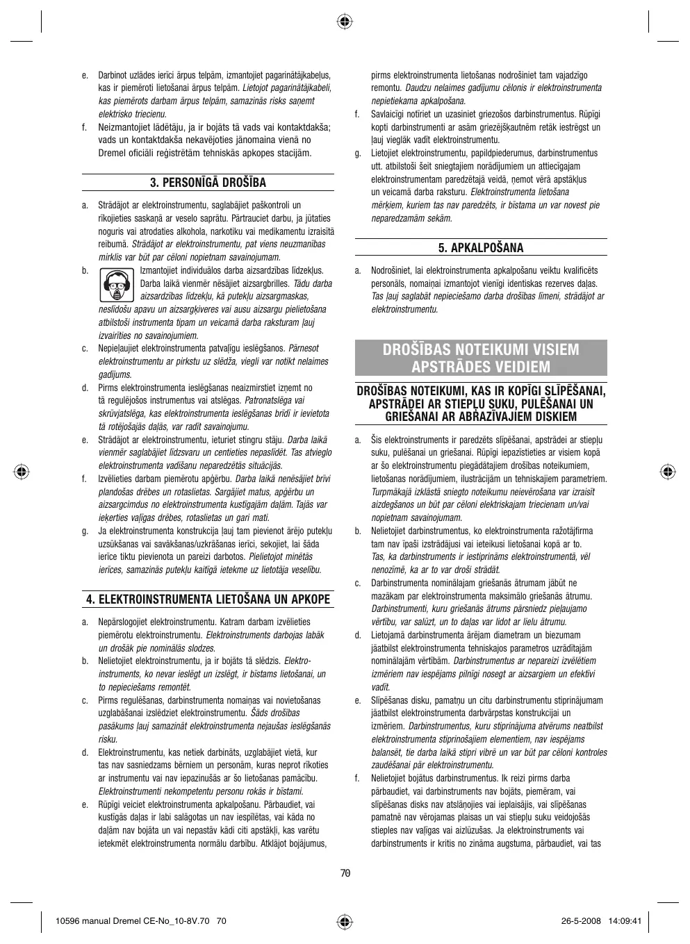 10596 manual Dremel CE-No_10-8V.70 70
