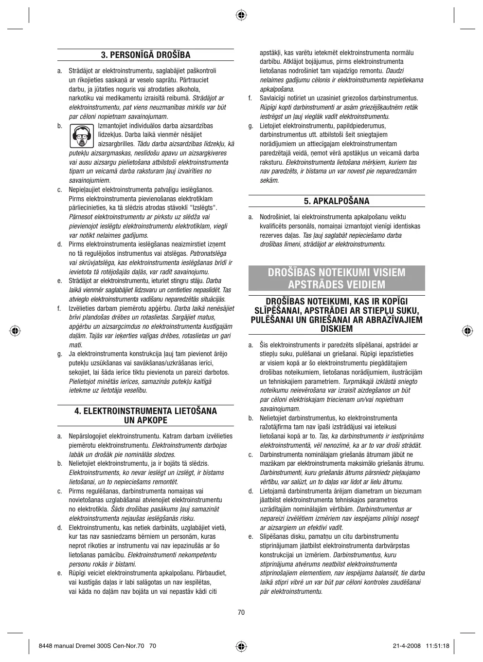 Téléchargez la notice de votre Rotējošs instruments au format PDF gratuitement ! Retrouvez votre notice 300 SERIES - DREMEL et reprennez votre appareil électronique en main. Sur cette page sont publiés tous les documents nécessaires à l'utilisation de votre appareil 300 SERIES de la marque DREMEL.