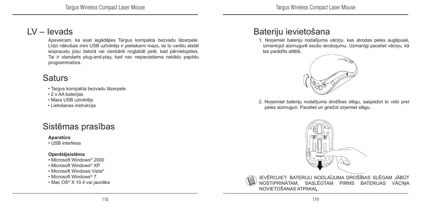 WIRELESS COMPACT LASER MOUSE - Bezvadu pele TARGUS - Notice d'utilisation et mode d'emploi gratuit