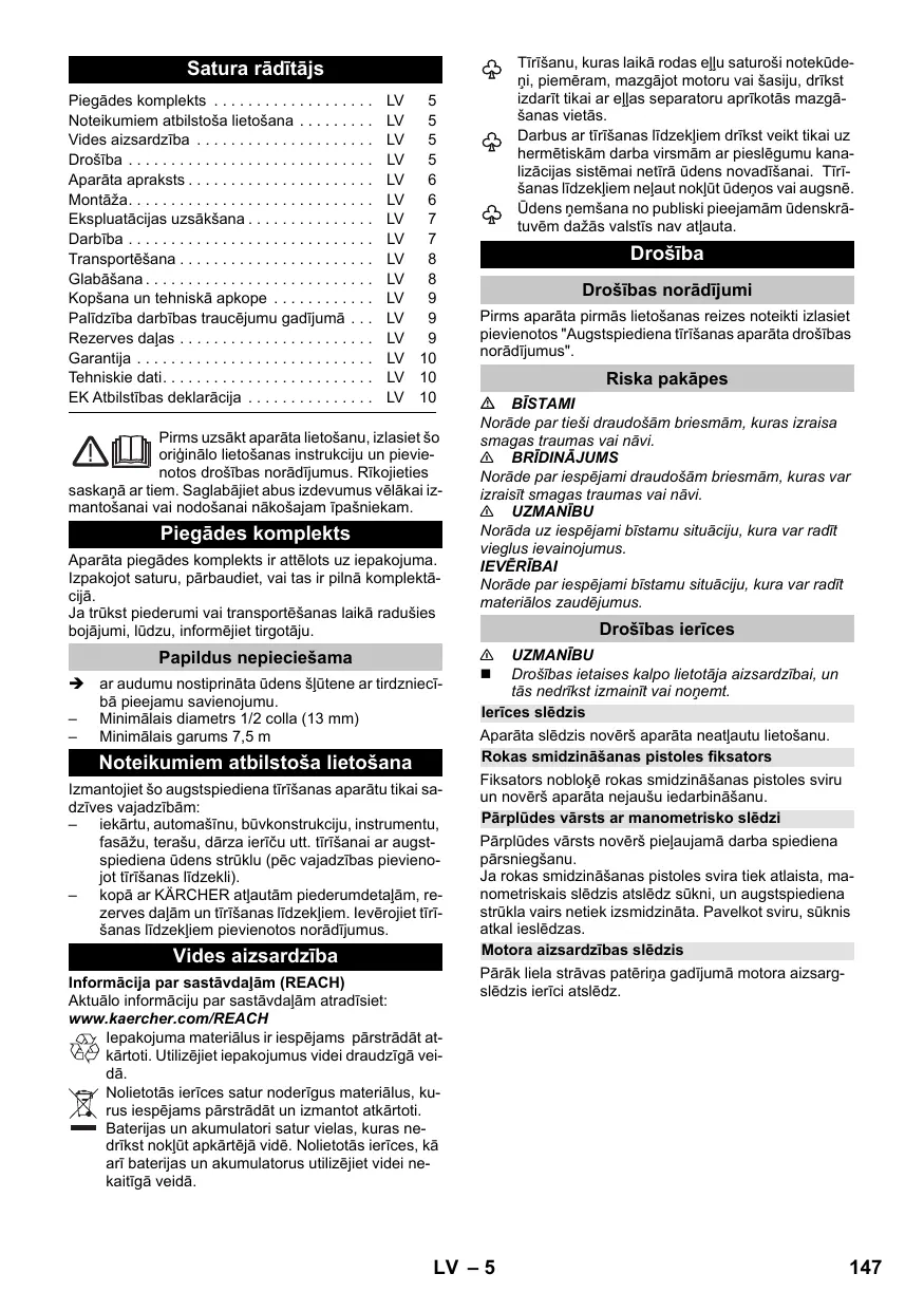 Téléchargez la notice de votre Augstspiediena tīrītājs au format PDF gratuitement ! Retrouvez votre notice K3 FULL CONTROL - KARCHER et reprennez votre appareil électronique en main. Sur cette page sont publiés tous les documents nécessaires à l'utilisation de votre appareil K3 FULL CONTROL de la marque KARCHER.