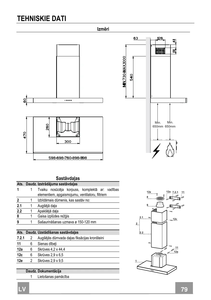 | 1 | 1 | Tvaiku nosūcēja korpuss, komplektā ar: vadības elementiem, apgaismojumu, ventilatoru, filtriem |