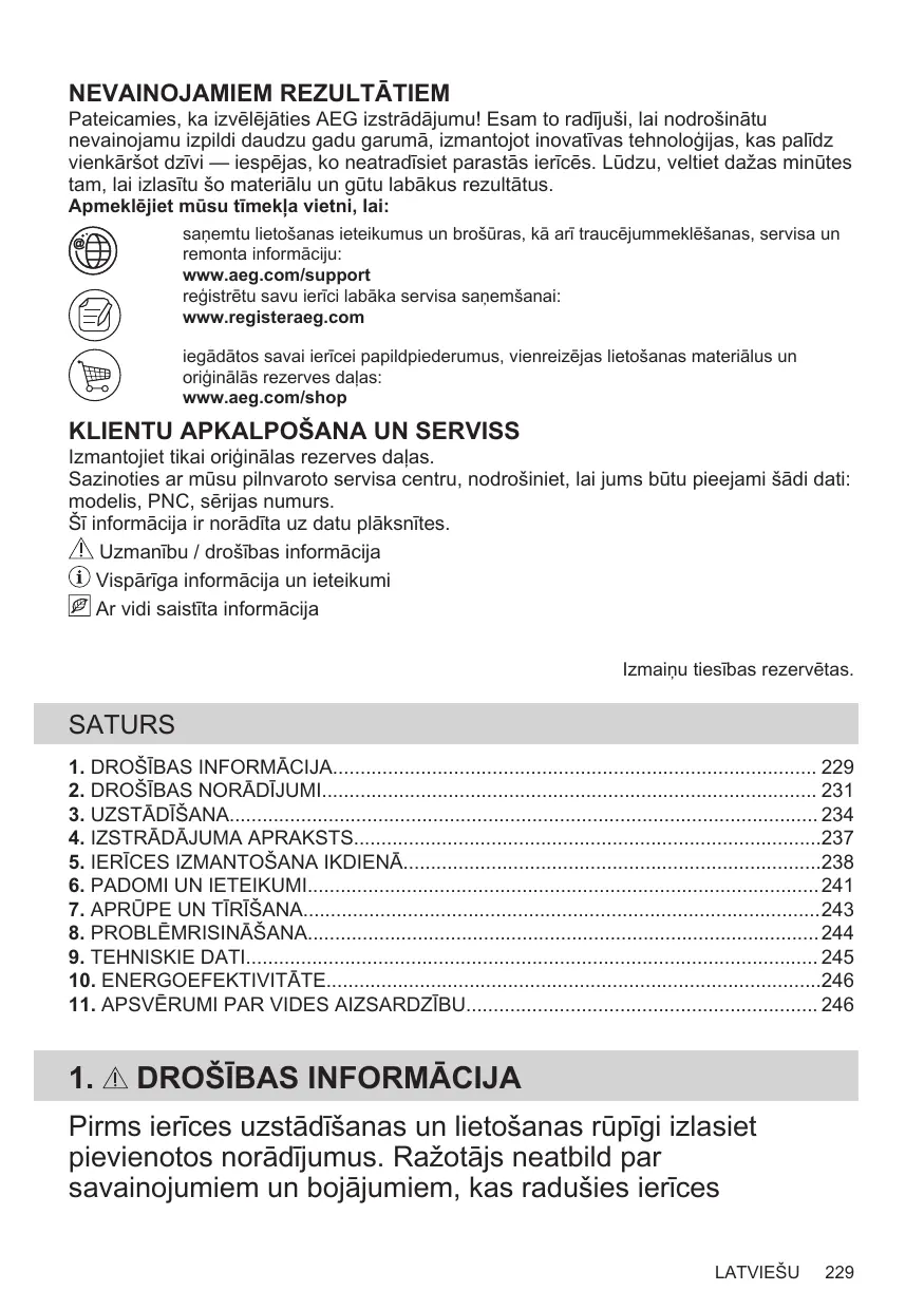 Obtenir des conseils d’utilisation, des brochures, un dépanneur, des informations sur le service et les réparations : www.aeg.com/support Enregistrer votre produit pour un meilleur service : www.registeraeg.com Acheter des accessoires, consommables et pièces de rechange d’origine pour votre appareil : www.aeg.com/shop