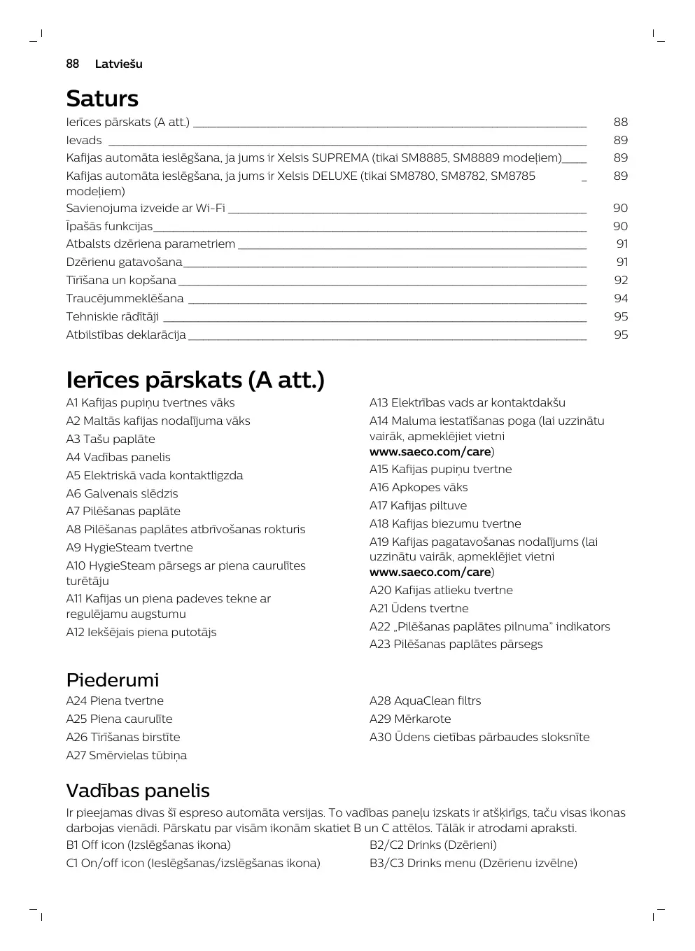 Téléchargez la notice de votre Automātiskā kafijas mašīna au format PDF gratuitement ! Retrouvez votre notice XELSIS SM8780 - SAECO et reprennez votre appareil électronique en main. Sur cette page sont publiés tous les documents nécessaires à l'utilisation de votre appareil XELSIS SM8780 de la marque SAECO.