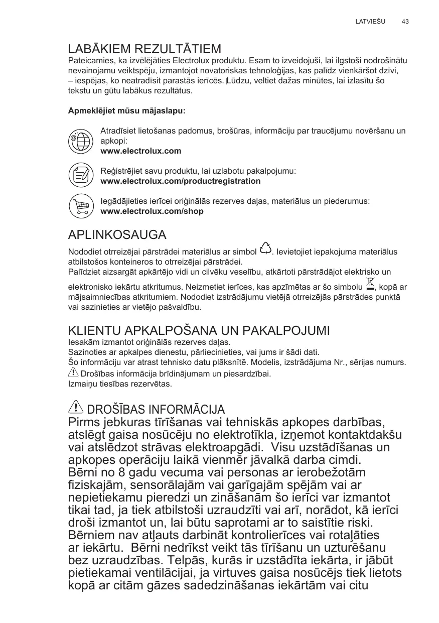 Téléchargez la notice de votre Virtuves nosūcējs au format PDF gratuitement ! Retrouvez votre notice EFT60238OW - ELECTROLUX et reprennez votre appareil électronique en main. Sur cette page sont publiés tous les documents nécessaires à l'utilisation de votre appareil EFT60238OW de la marque ELECTROLUX.