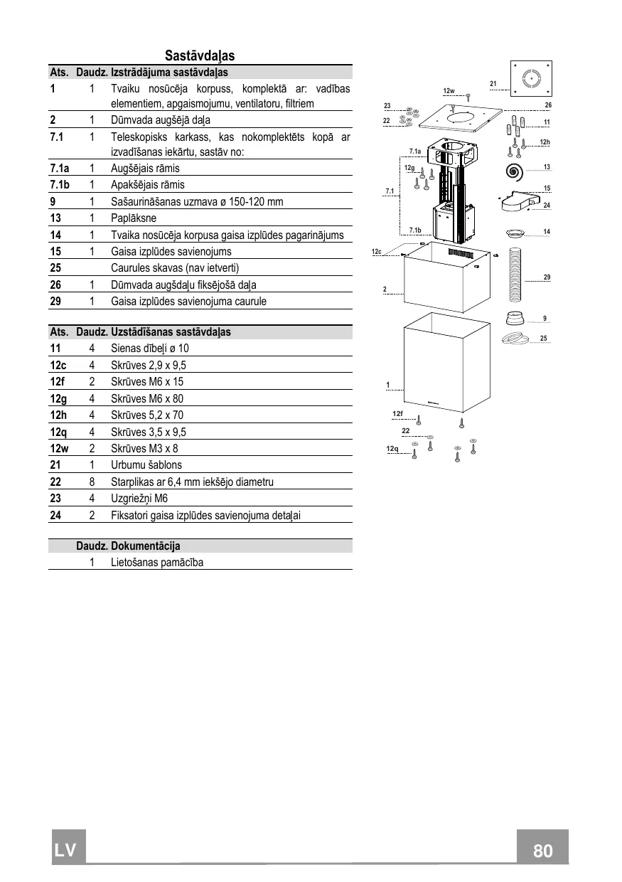 • Bevestig de afzuigkap van onderaf met de 4 bijgeleverde schroeven 12q en 4 sluitringen 22 aan het frame (ref. B) en haal alle schroeven definitief aan.
