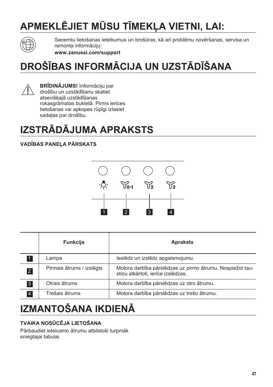 APMEKLĒJIET MŪSU TĪMEKĻA VIETNI, LAI: Saņemtu lietošanas ieteikumus un brošūras, kā arī problēmu novēršanas, servisa un remonta informāciju: www.zanussi.com/support