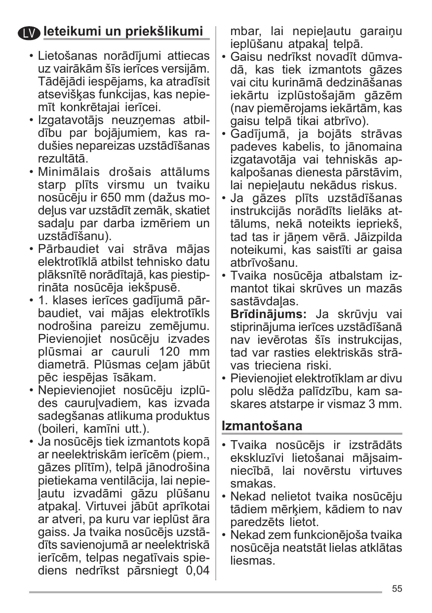 Ne pas évacuer l’air à travers un tube flexible utilisé pour l’aspiration des fumées des appareils alimentés au gaz ou avec d’autres combustibles (ne pas utiliser avec des appareils ayant une seule sortie d’air dans la pièce).
