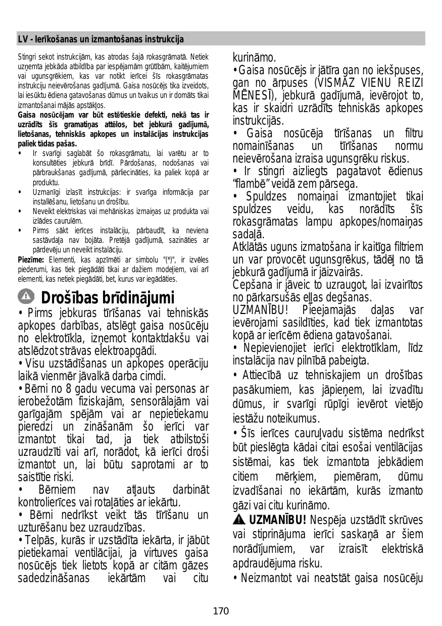 Aténgase estrictamente a las instrucciones del presente manual. Se declina cada responsabilidad por eventuales inconvenientes, daños o incendios provocados al aparato originados por la inobservancia de las instrucciones colocadas en este manual. La campana extractora ha sido ideada para la aspiración de humos y vapores producidos durante la cocción y para el uso doméstico.