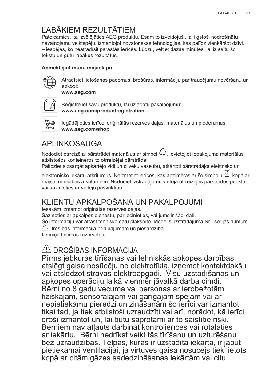 Enregistrer votre produit pour obtenir un meilleur service : www.aeg.com/productregistration Acheter des accessoires, consommables et pièces de rechange d’origine pour votre appareil : www.aeg.com/shop