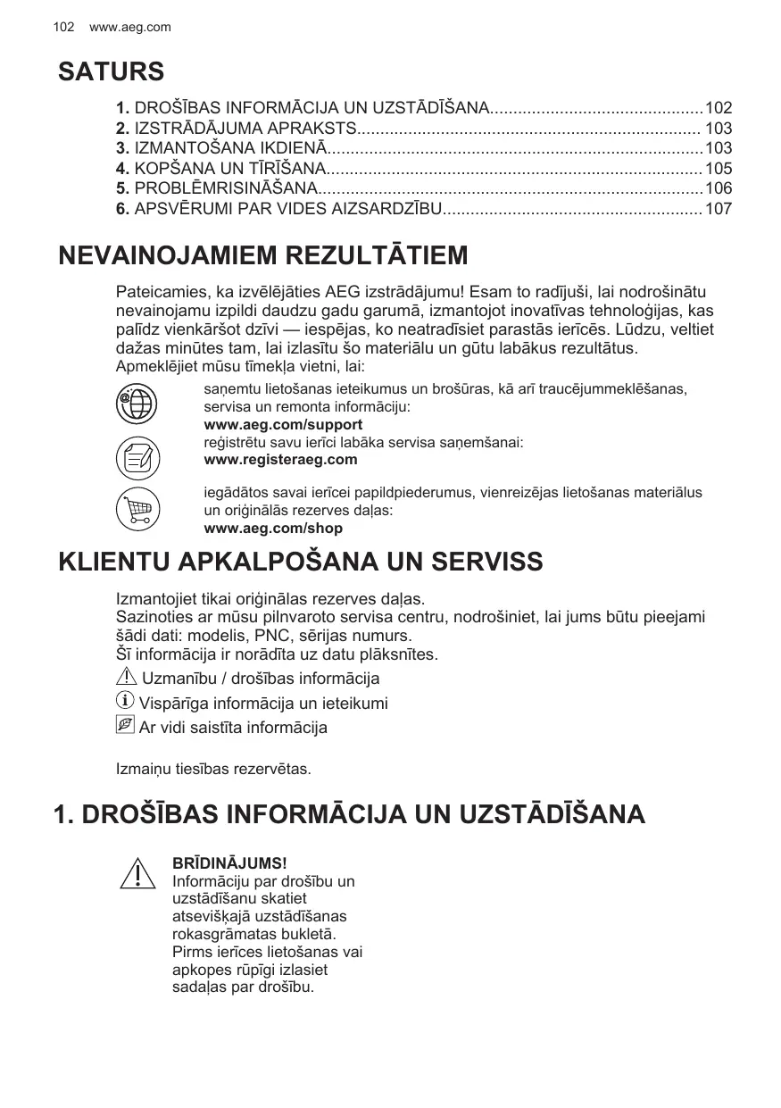 Enregistrer votre produit pour un meilleur service : www.registeraeg.com Acheter des accessoires, consommables et pièces de rechange d’origine pour votre appareil : www.aeg.com/shop