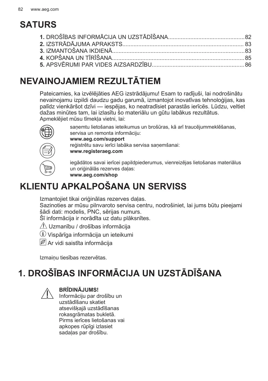Enregistrer votre produit pour un meilleur service : www.registeraeg.com Acheter des accessoires, consommables et pièces de rechange d’origine pour votre appareil : www.aeg.com/shop