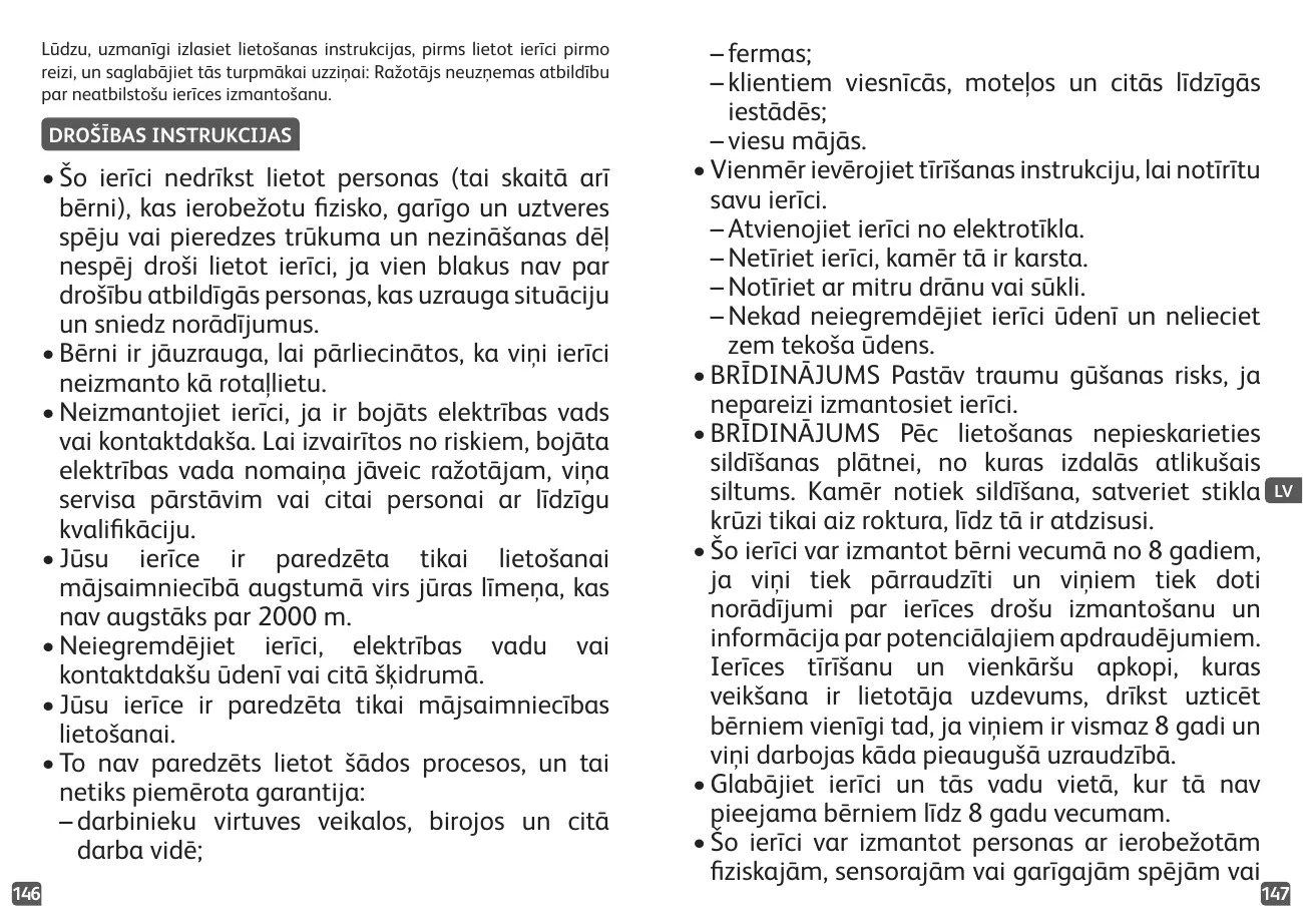 • Ne laissez pas les enfants jouer avec l'appareil. • N'utilisez pas l'appareil si la prise ou le câble d'alimentation est endommagé. Le câble d'alimentation doit être remplacé par le fabricant, son service après-vente ou des personnes de qualifications similaires pour éviter tout danger. • Votre appareil est destiné uniquement à un usage domestique et à l'intérieur de la maison, à une altitude inférieure à 2 000 m. • N'immergez pas l'appareil, le câble d'alimentation ou la fiche dans l'eau ou tout autre liquide. • Cet appareil est conçu pour un usage domestique seulement.