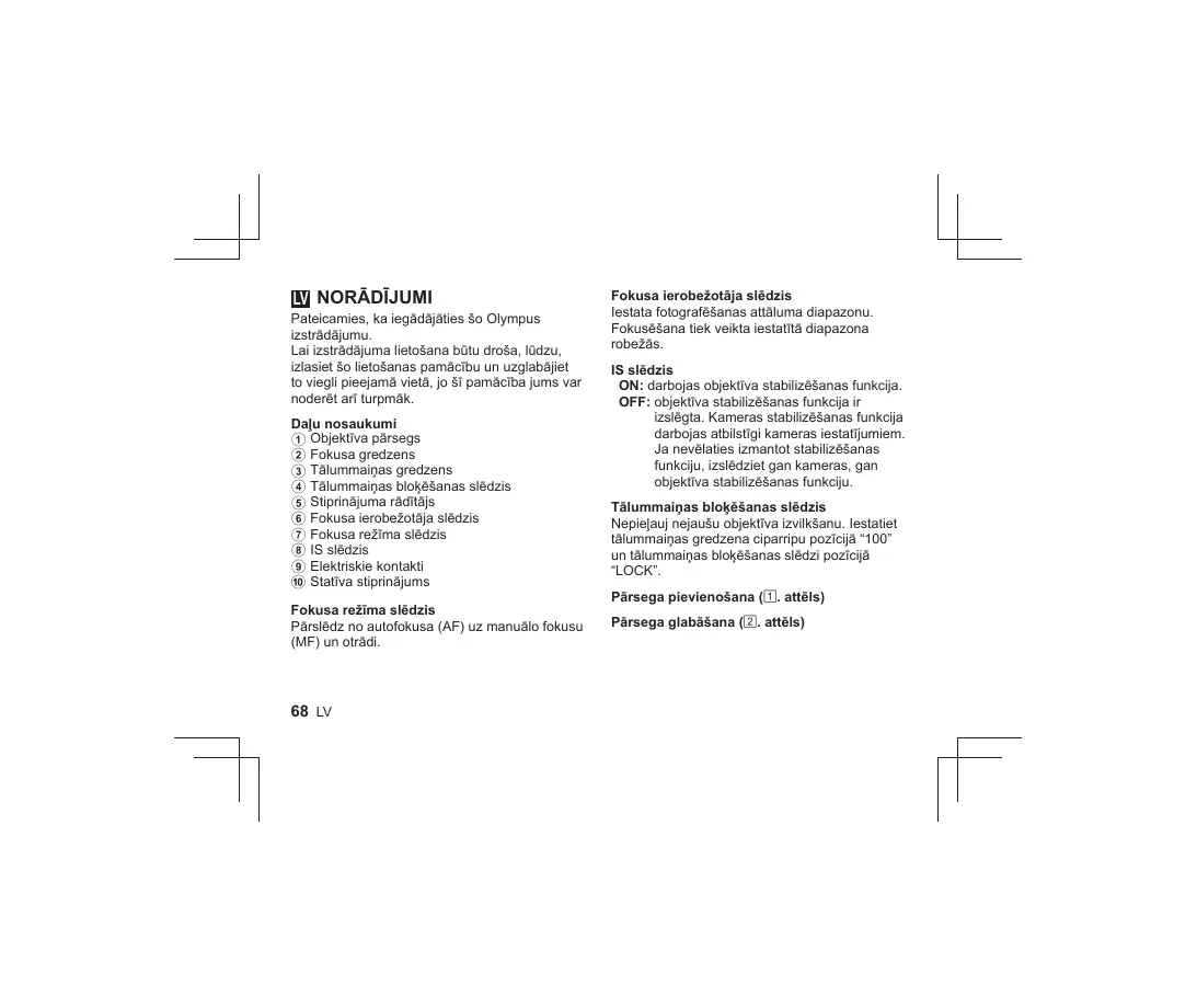 Visite nuestra página web http://www.olympus-europa.com o Ilame al: 5 Marca de montagem 6 Interruptor limitador de focagem 7 Interruptor de modo de focagem 8 Interruptor IS 9 Contactos elétricos 0 Encaixe do tripé Interruptor de modo de focagem 6 Comutator de limitare a focalizării 7 Comutator pentru modul de focalizare 8 Comutator IS 9 Contacte electrice
