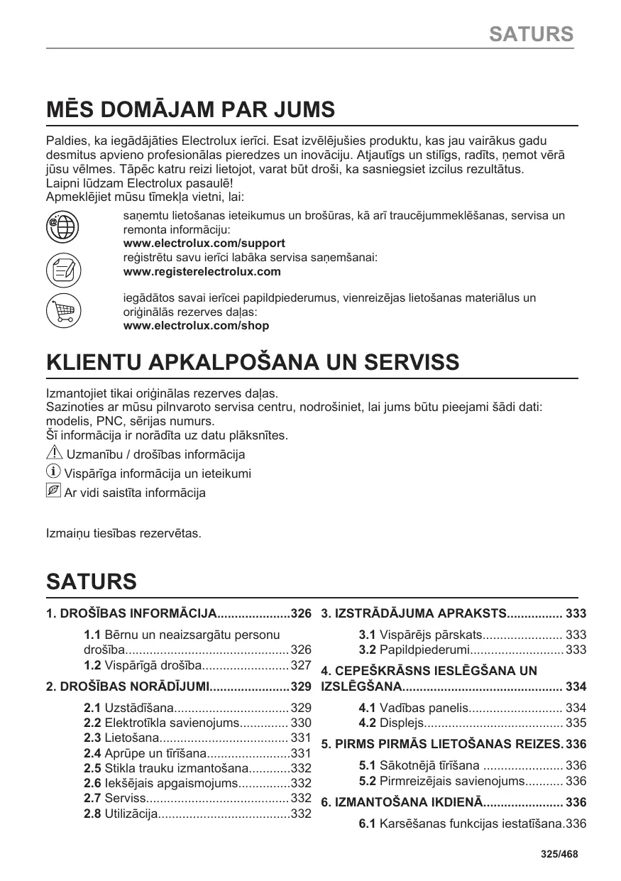 Avant de contacter notre centre de service agréé, assurez-vous de disposer des informations suivantes : Modèle, PNC, numéro de série. Ces informations figurent sur la plaque signalétique. Avertissement/Consignes de sécurité Informations générales et conseils Informations environnementales Sous réserve de modifications.