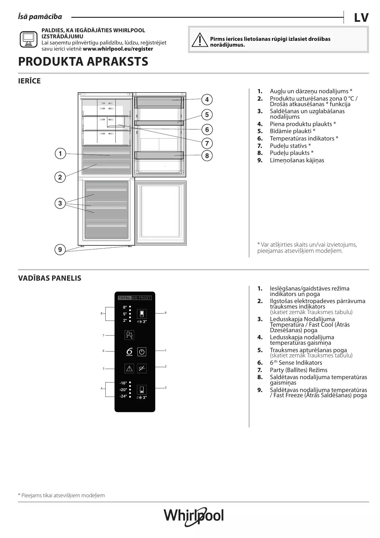 Īsā pamācība PALDIES, KA IEGĀDĀJĀTIES WHIRLPOOL IZSTRĀDĀJUMU Lai saņemtu pilnvērtīgu palīdzību, lūdzu, reģistrējiet savu ierīci vietnē www.whirlpool.eu/register