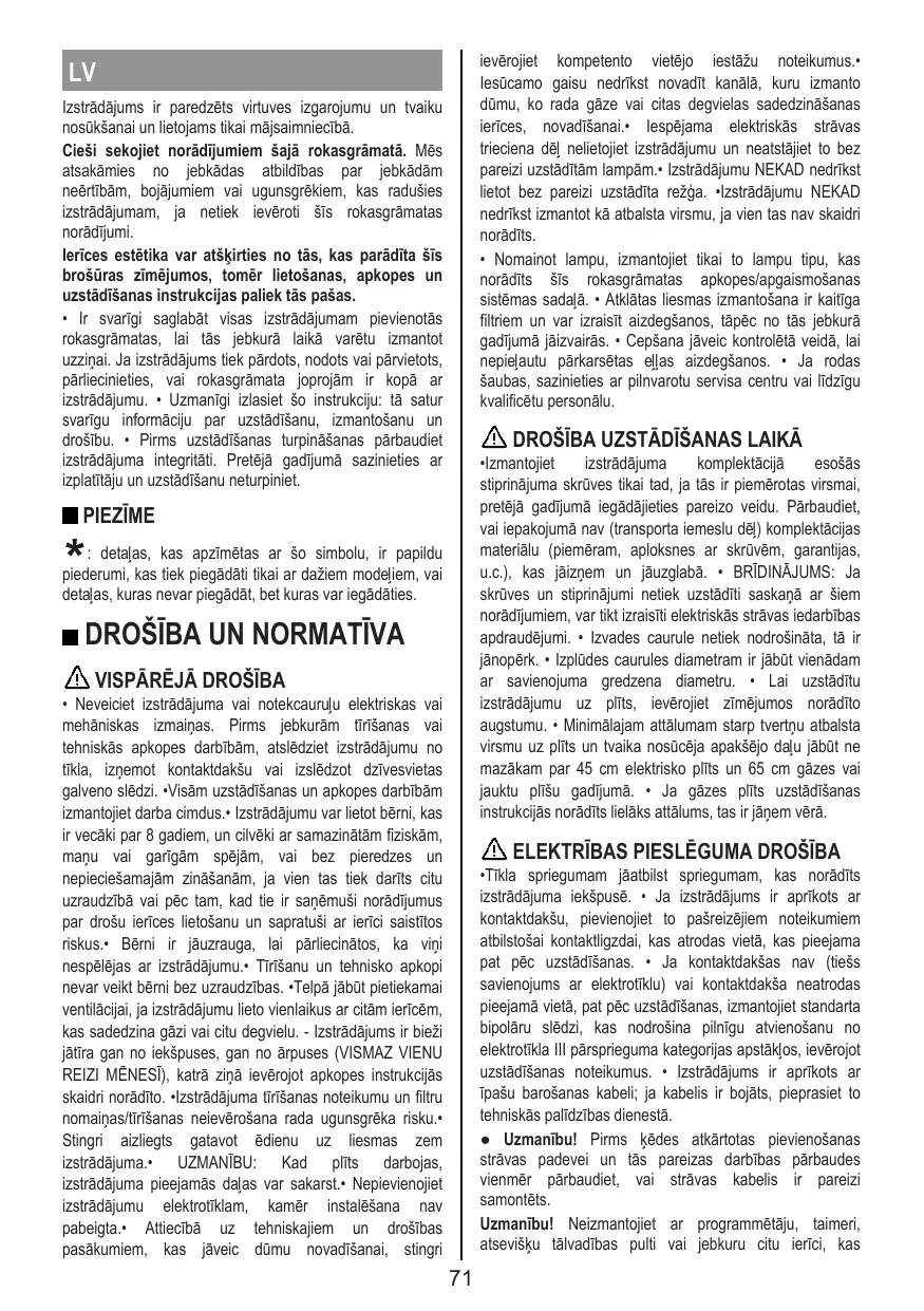 FR Le produit est conçu pour l’aspiration des fumées et des vapeurs de cuisson et est destiné au seul usage domestique.