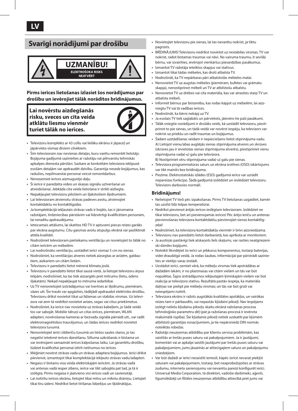 Ne placez pas d'objets, de récipients remplis de liquide, comme des vases, ete. sur la télévision. Ces récipients pourraient tre renversés, ce qui mettrait en danger la sécurité électrique. Placer la TV exclusivement sur des surfaces plates et stables, Ne placer aucun objet tel qu'un journal ou une couverture, etc. sur ou sous la TV.