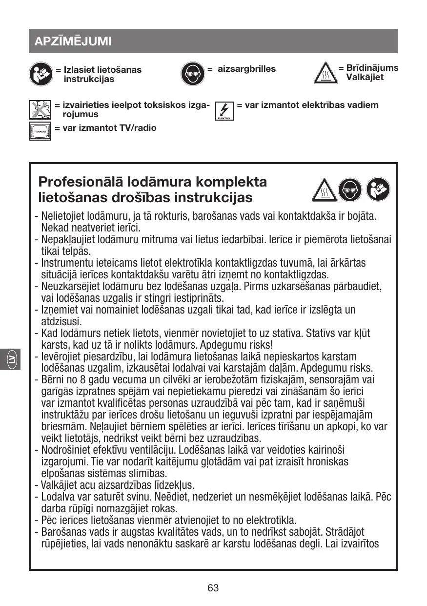 - Le fil de brasage peut contenir du plomb. Ne pas manger, boire ou fumer pendant le brasage. Impérativement se laver soigneusement les mains après le travail !