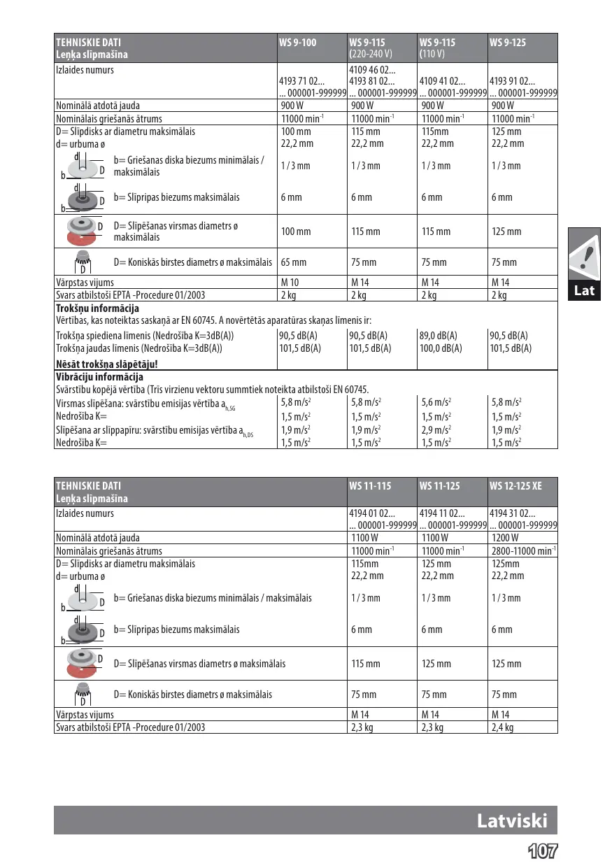 Modèle : WS 9-100, WS 9-115, WS 9-125, WS 11-115, WS 11-125, WS 12-125 XE