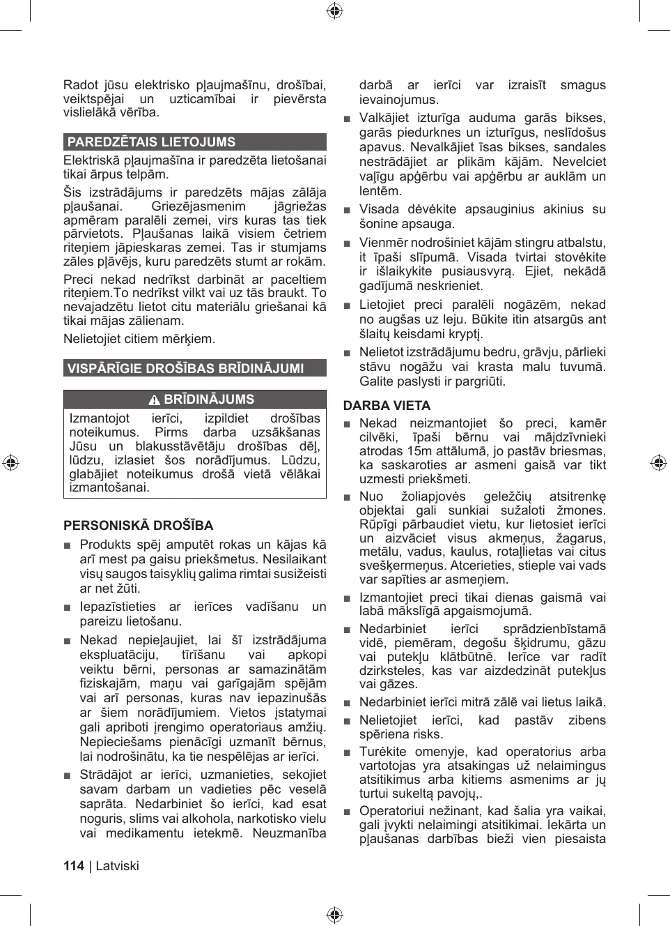 = La tondeuse à gazon est capable d'amputer les mains et les pieds, ainsi que de projeter des objets. Le non-respect de toutes les règles de sécurité est susceptible d'entraîner des blessures graves voire mortelles.