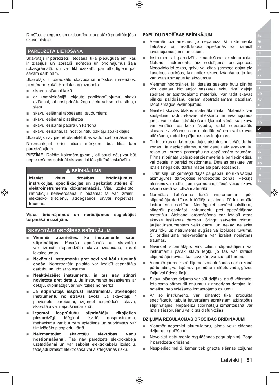 = Soyez toujours conscient qu'une mauvaise utilisation ainsi qu'une mauvaise manipulation de cet outil peuvent causer des blessures à vous et aux autres.