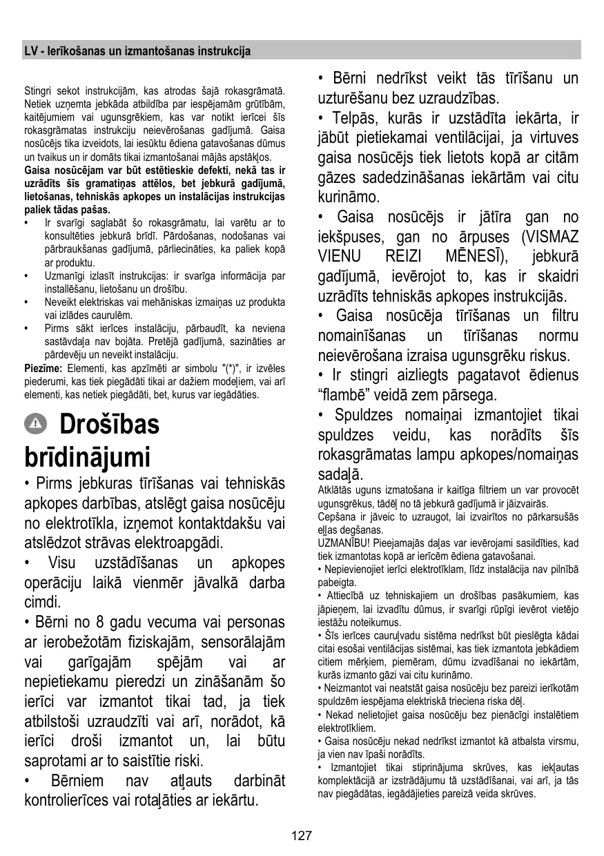 Téléchargez la notice de votre Virtuves nosūcējs au format PDF gratuitement ! Retrouvez votre notice PRF0023893B - ELICA et reprennez votre appareil électronique en main. Sur cette page sont publiés tous les documents nécessaires à l'utilisation de votre appareil PRF0023893B de la marque ELICA.