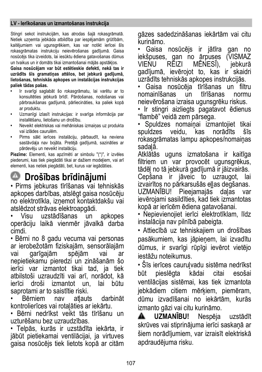 + La hotte ne doit JAMAIS être utilisée comme une surface d'appui, sauf indication expresse.