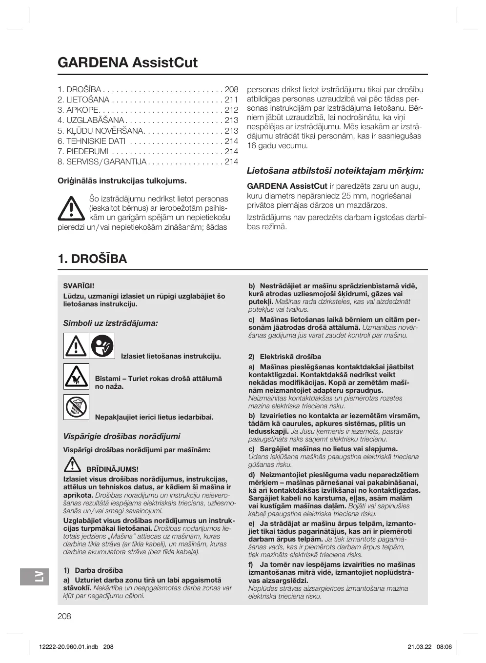 LIETOŠANAS INSTRUKCIJA 12222 GARDENA