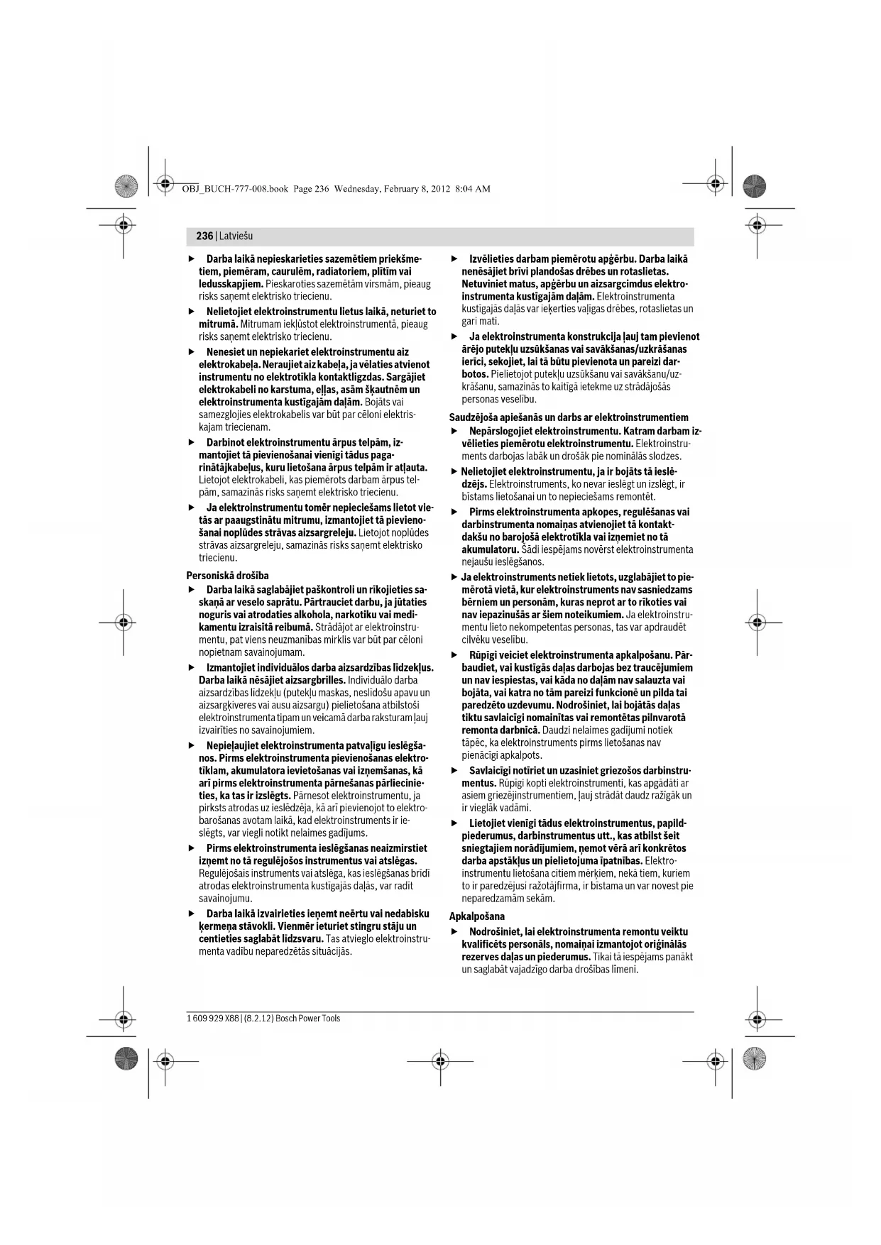 OBJ_BUCH-777-008.book Page 244 Wednesday, February 8, 2012 8:04 AMLietuviškai | 245 Bosch Power Tools 1 609 929 X88 | (8.2.12) Latvijas Republika