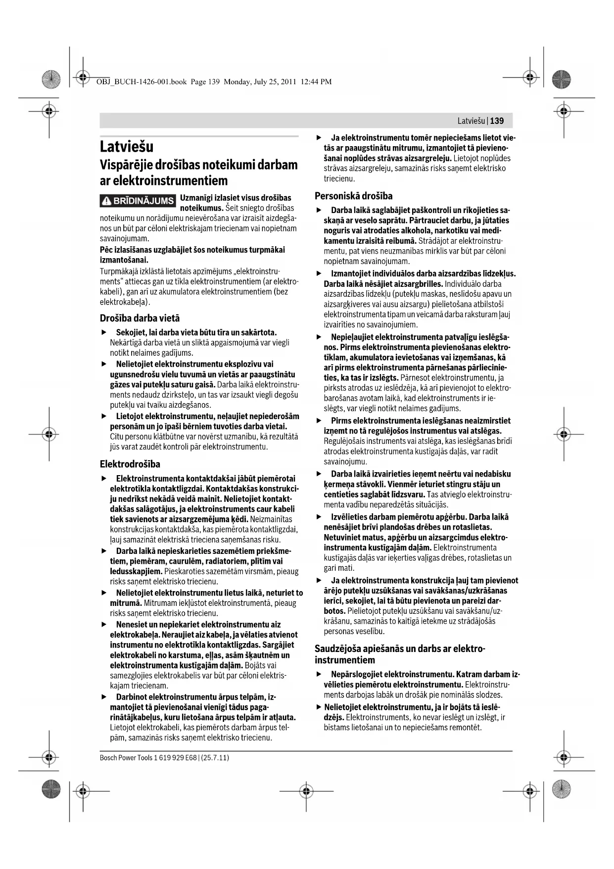Lietojiet vienigi tadus elektroninstrumentus, papild-piederumus, darbinstrumentus utt., kas atbilst seit sniegtajiem noradijumiem, nemot vera ari konkretos darba apstaklus un pielietojuma ipatnibas. Elektro-instrumentu lietošana citiem merkiem, neka tiem, kuriem to ir paredzejusi ražotajirma, ir bistama un var novest pie neparedzamam sekam.
