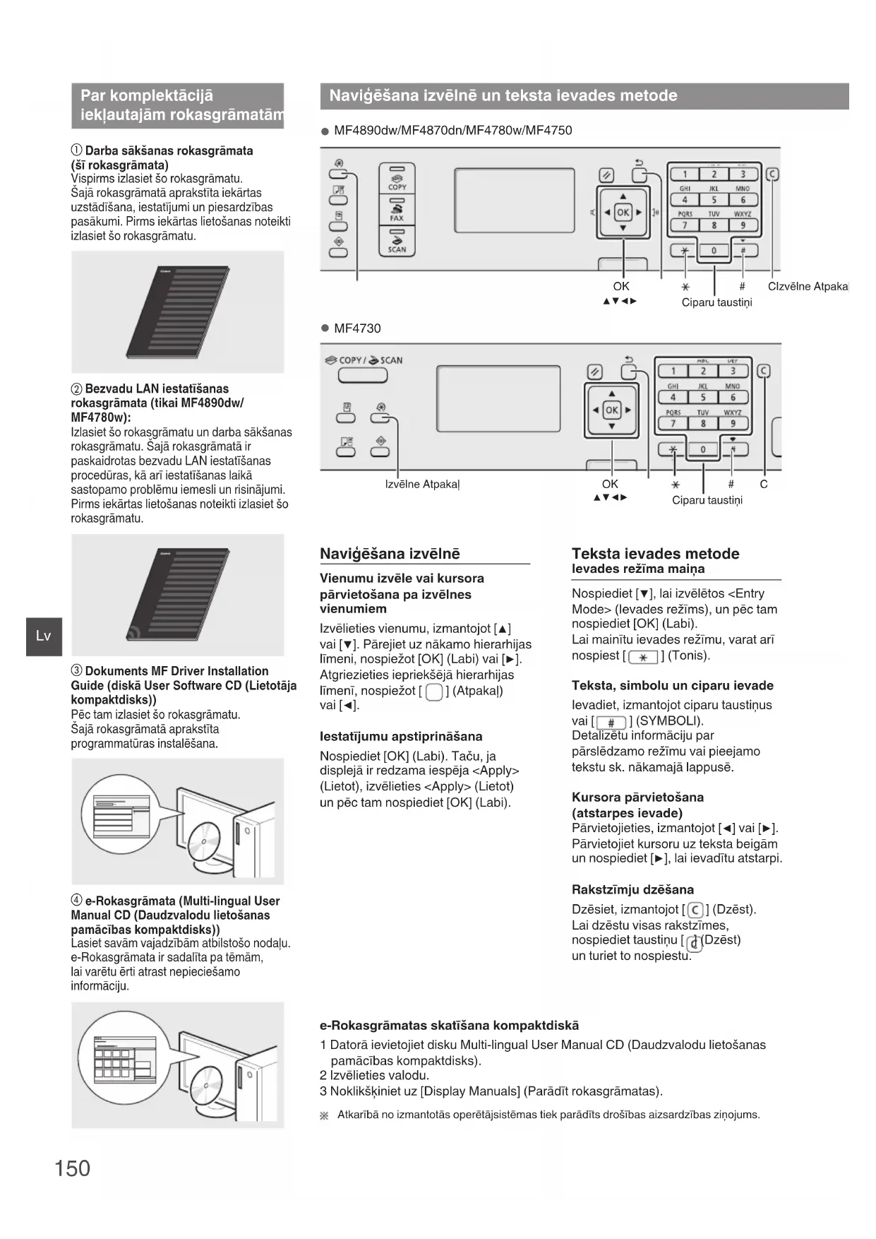 “Naviģēšana izvēlnē un teksta ievades metode” ( 150. lpp.). ● MF4890dw/MF4780w