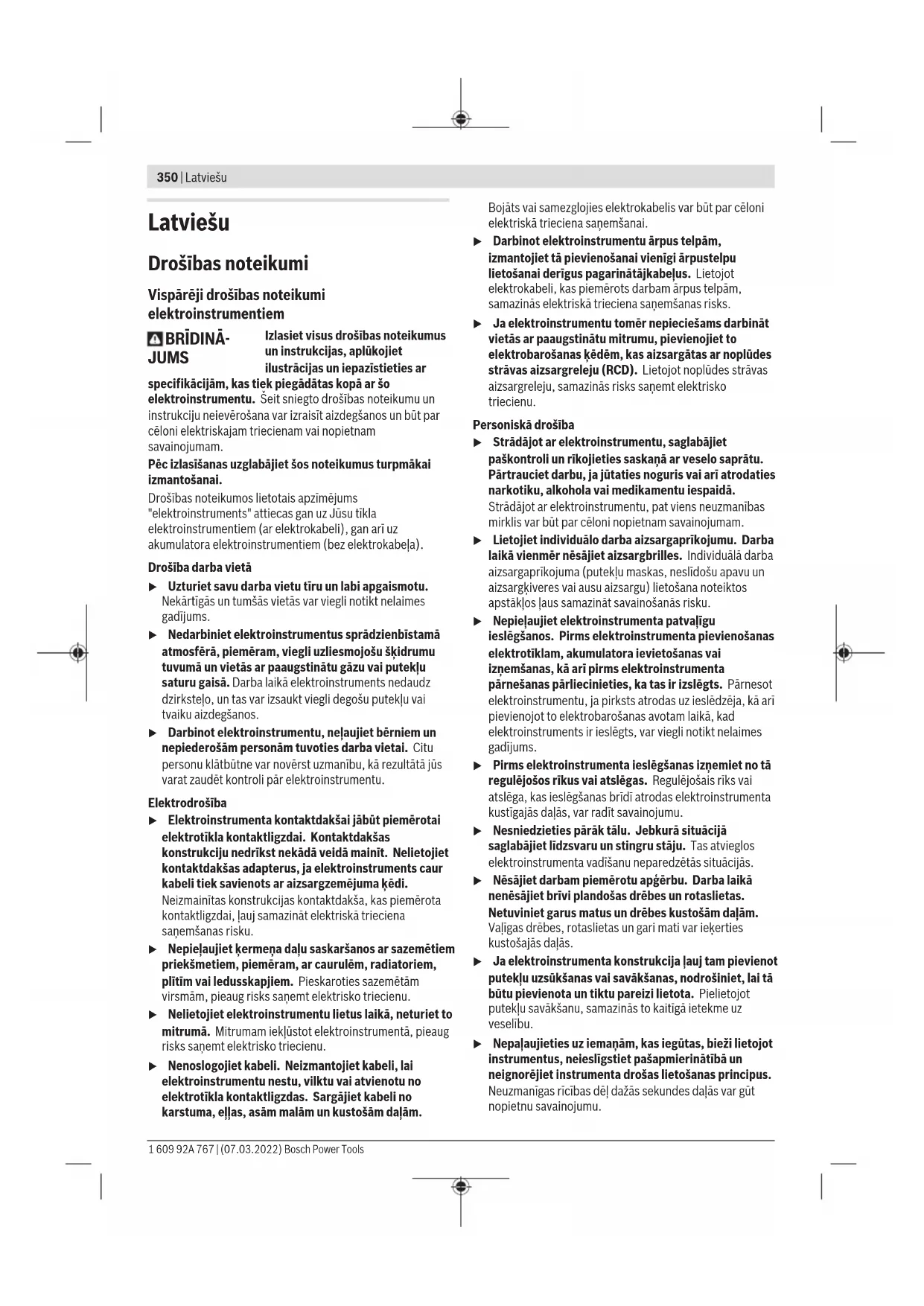 nopietnu savainojumu. 1 609 92A 767 | (07.03.2022) Bosch Power ToolsLatviešu | 351