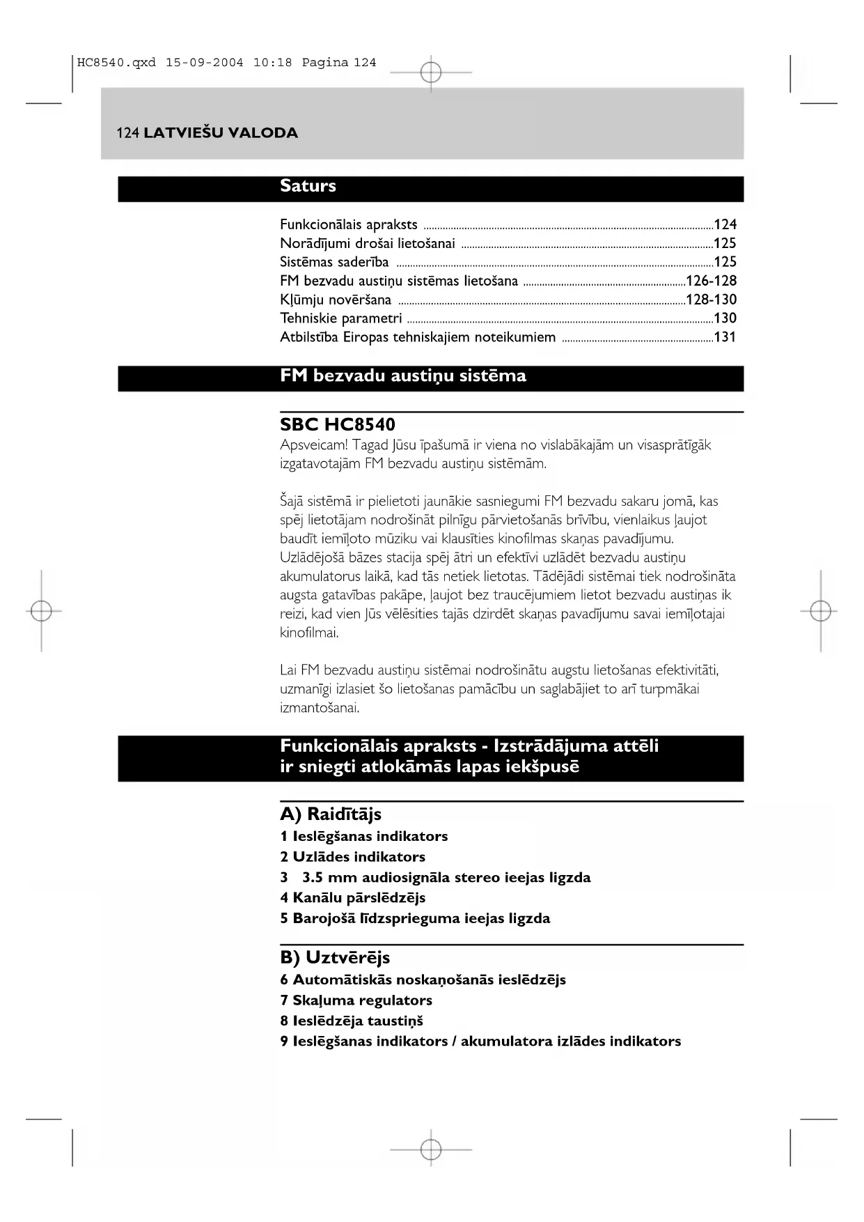 HC8540.qxd 15-09-2004 10:18 Pagina 125126 LATVIEŠU VALODA FM bezvadu austiņu sistēmas lietošana