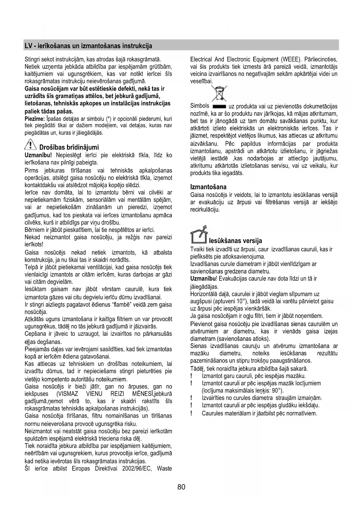 Uzmanību! Evakuācijas caurule nav dota līdzi un tā ir