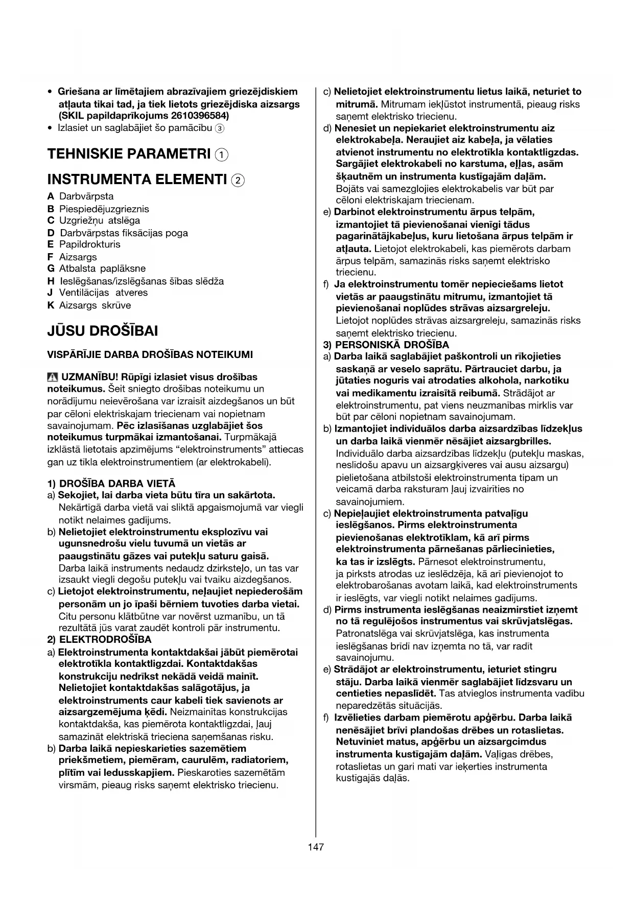 JŪSU DROŠĪBAI VISPĀRĪJIE DARBA DROŠĪBAS NOTEIKUMI UZMANĪBU! Rūpīgi izlasiet visus drošības