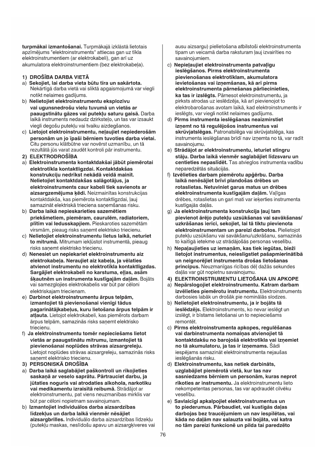 DROŠĪBA VISPĀRĒJIE NOTEIKUMI ELEKTROINSTRUMENTU DROŠAI LIETOŠANAI BRĪDINĀJUMS Izlasiet drošības noteikumus un