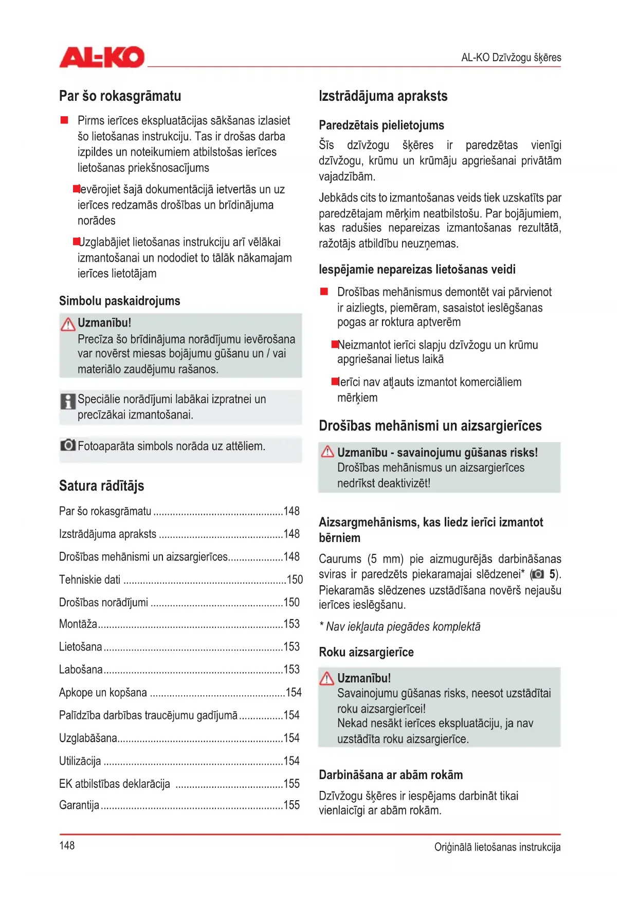 Drošības mehānismi un aizsargierīces 148