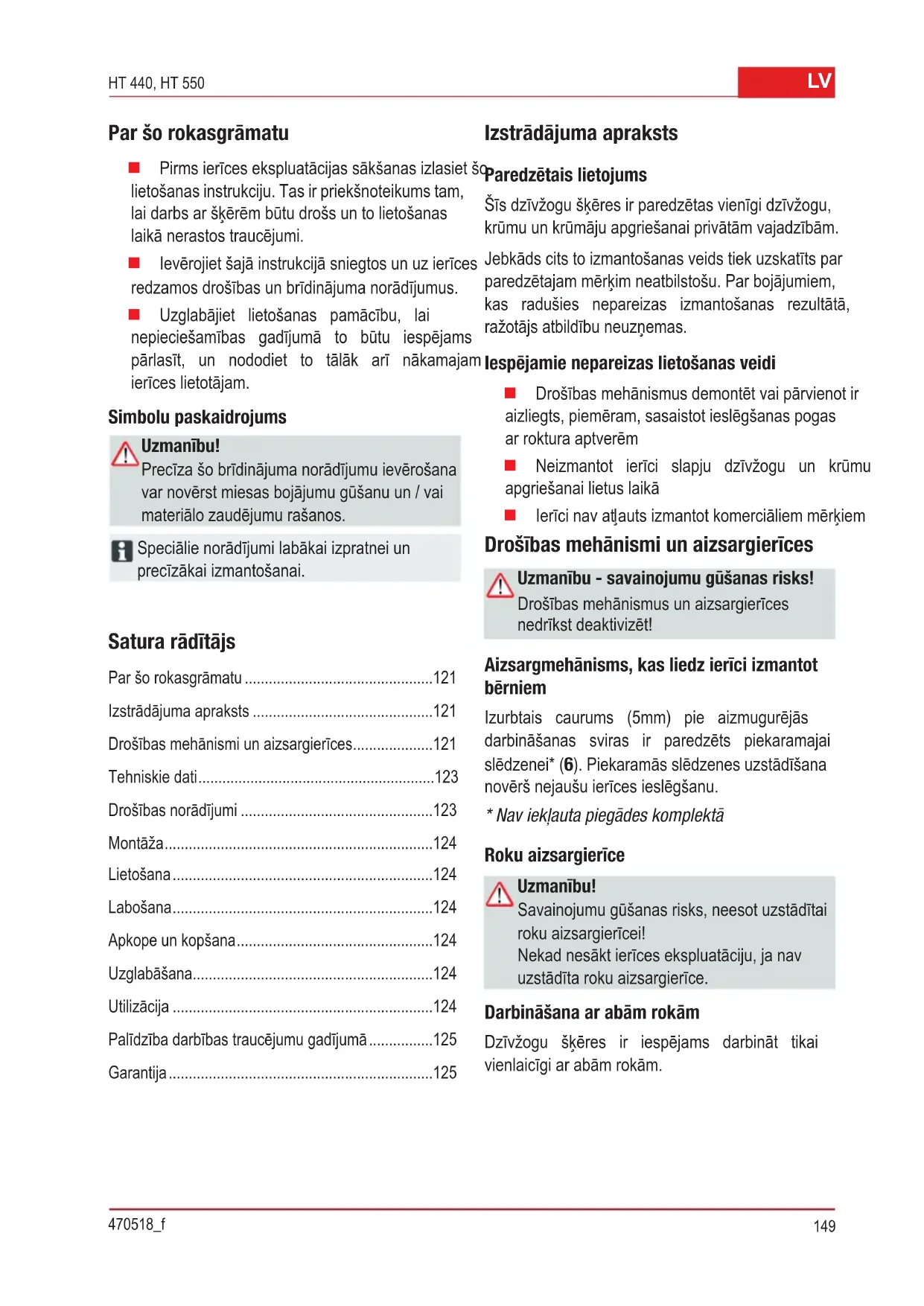 Tehniskie dati HT 440 Basic Cut HT 550 Safety Cut