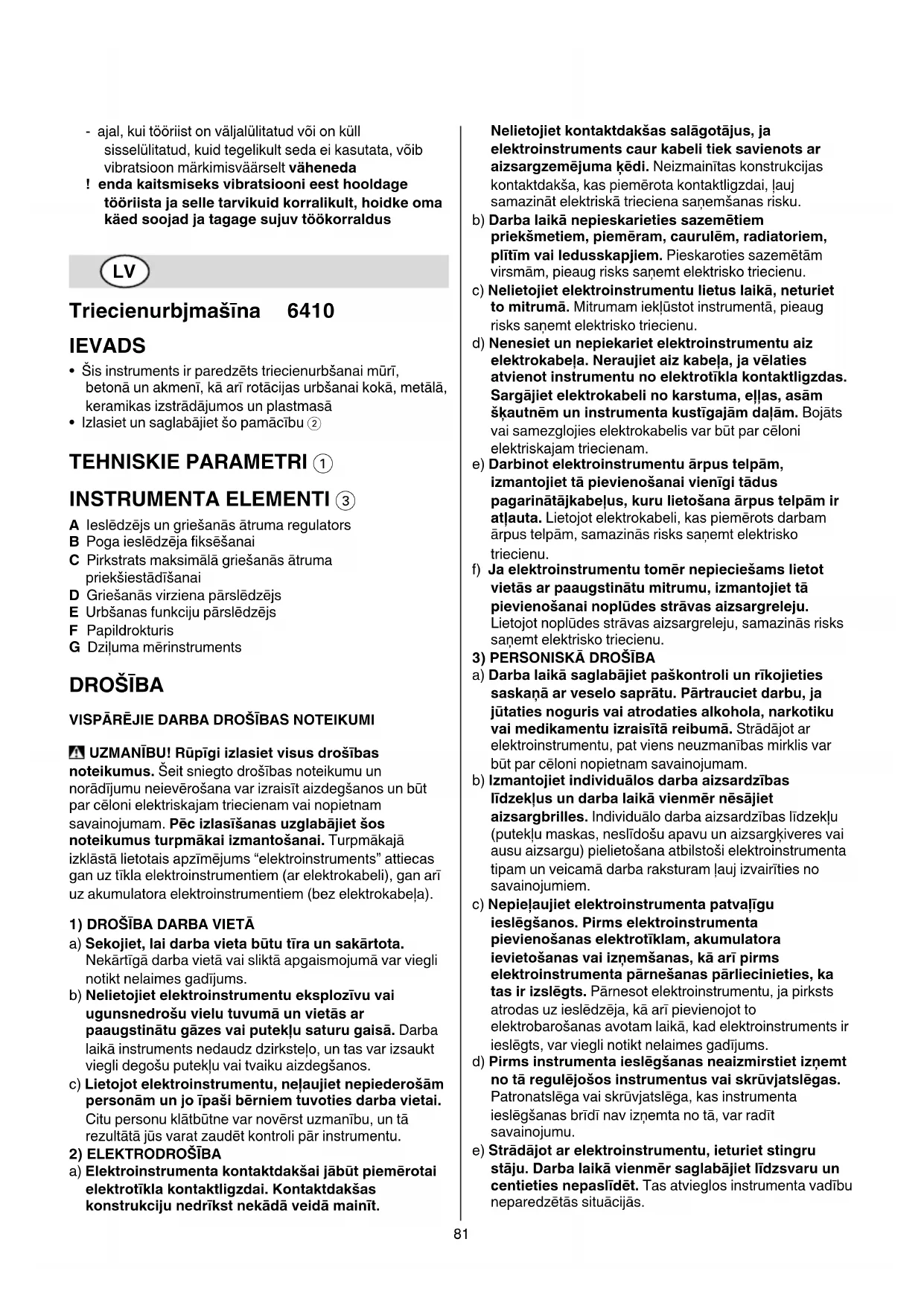 e) Strādājotarelektroinstrumentu,ieturietstingru