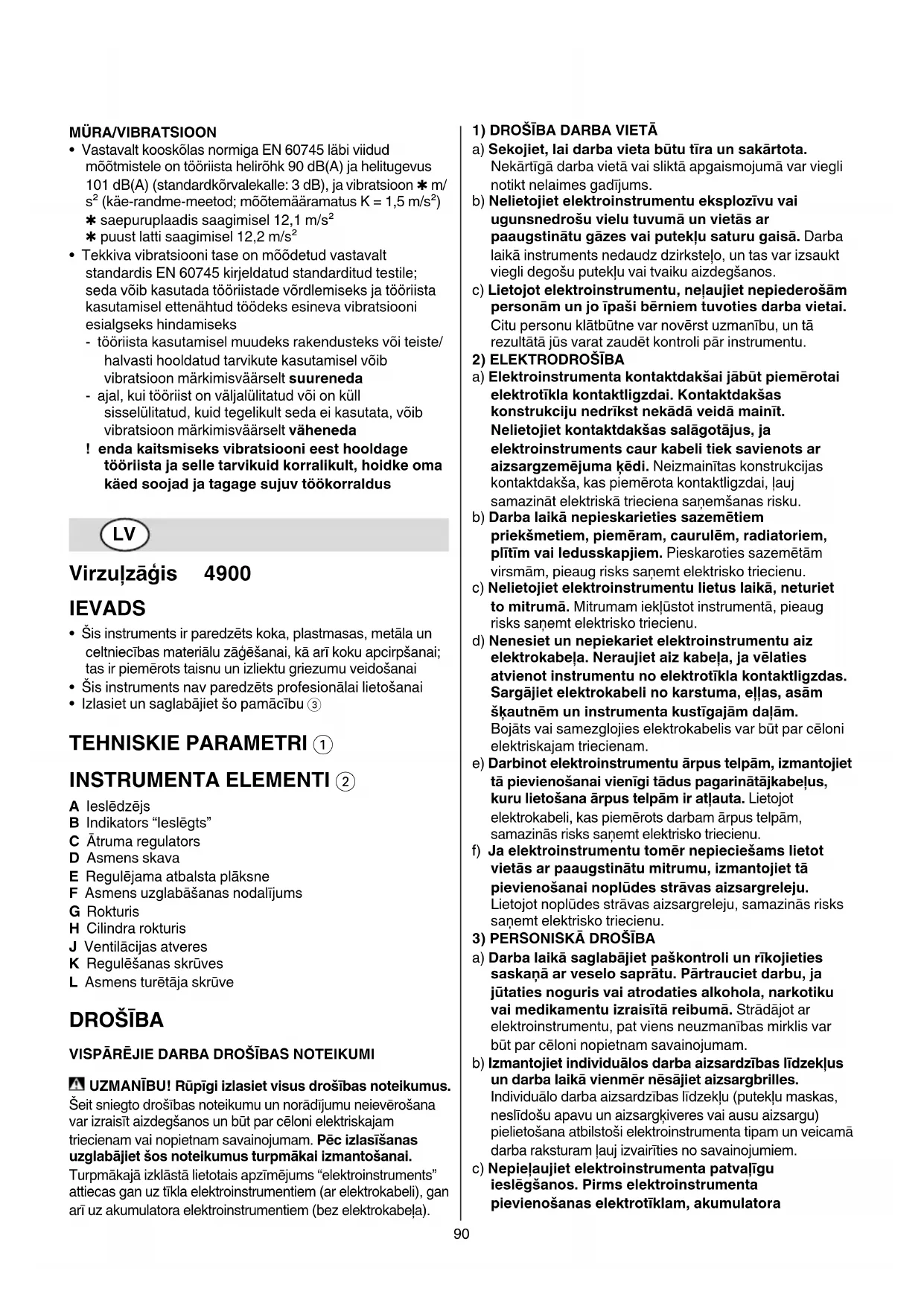 • Saskaņā ar standartu EN 60745 noteiktais instrumenta