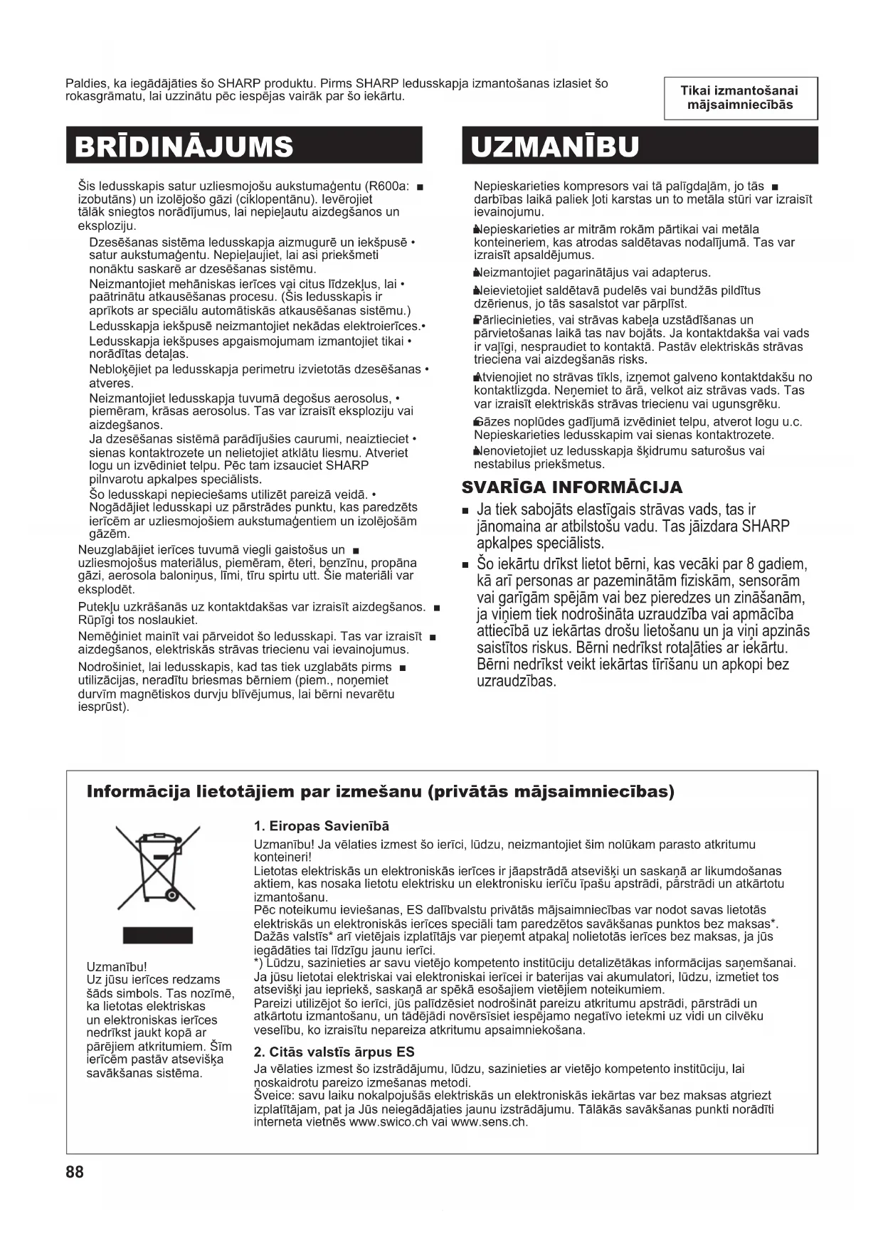 Paldies, ka iegādājāties šo SHARP produktu. Pirms SHARP ledusskapja izmantošanas izlasiet šo