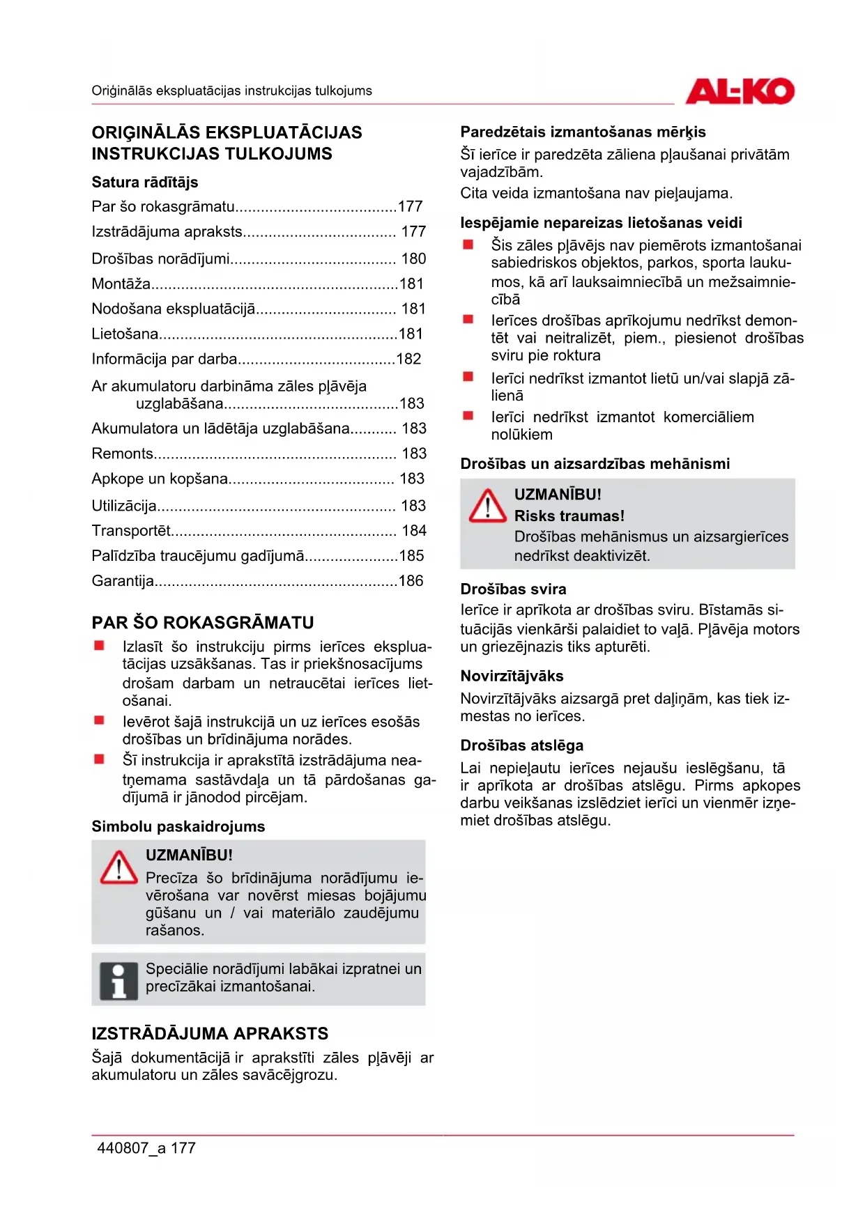 LV Oriģinālās ekspluatācijas instrukcijas tulkojums 177