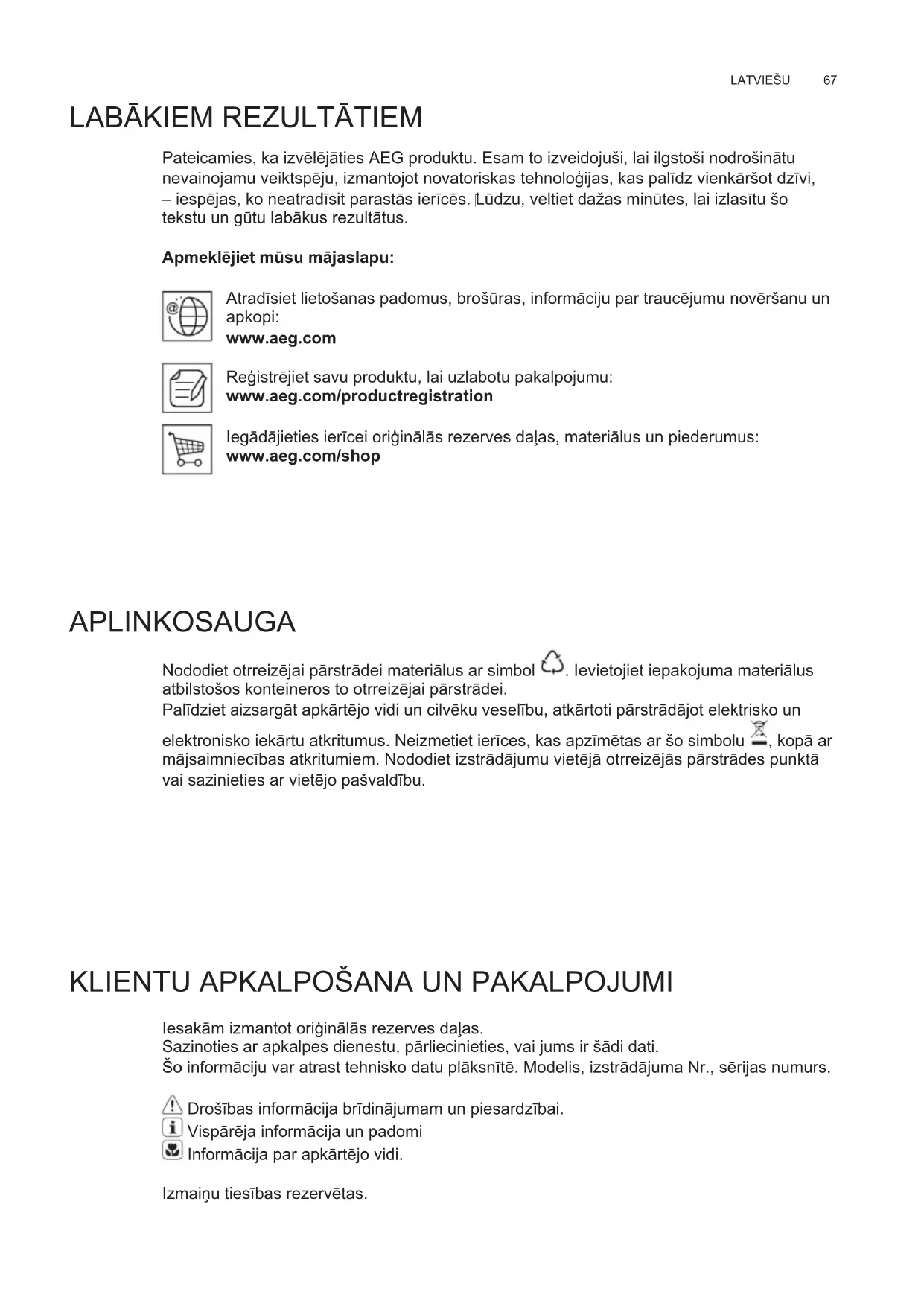 LATVIEŠU Pateicamies, ka izvēlējāties AEG produktu. Esam to izveidojuši, lai ilgstoši nodrošinātu