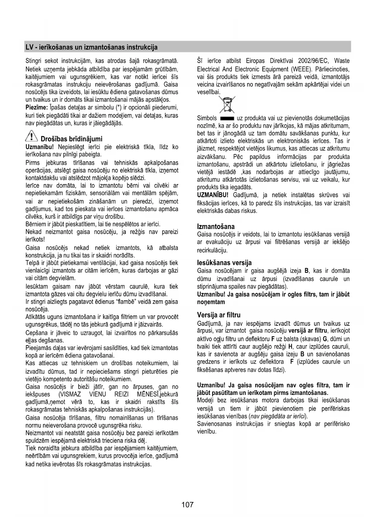 Uzmanību! Ja gaisa nosūcējam nav ogles filtra, tam ir