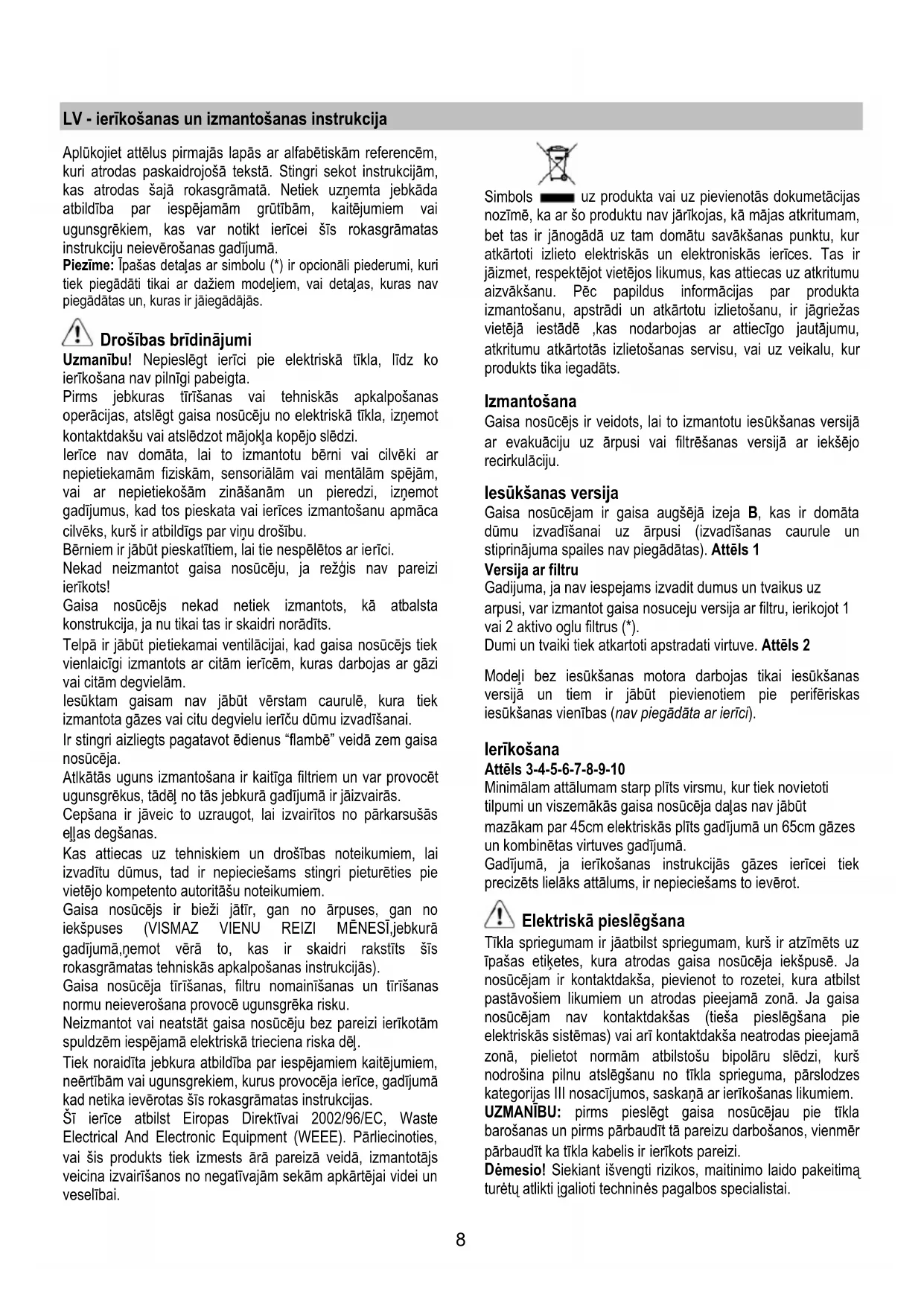 LV - ierīkošanas un izmantošanas instrukcija