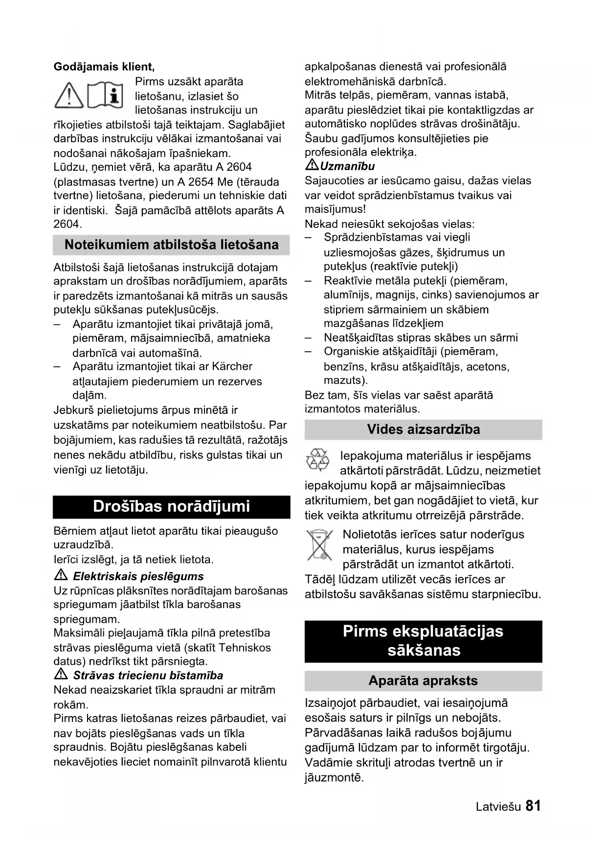 LIETOŠANAS INSTRUKCIJA A 2604 Kärcher